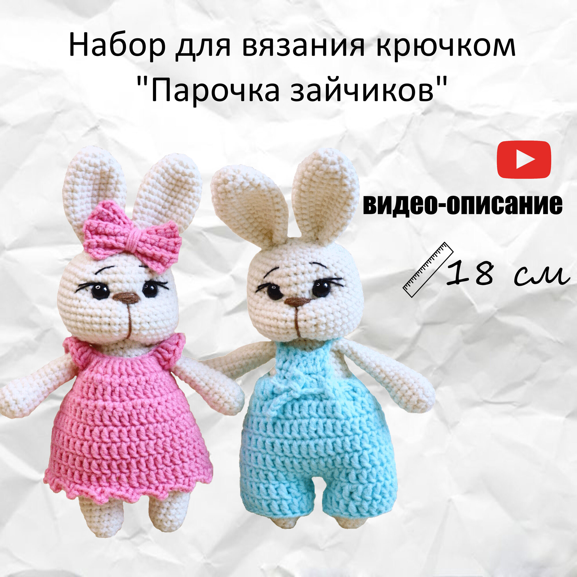 Купить Набор для вязания "Зайчики в нарядах", вязание крючком, молочный цвет, 9+ лет