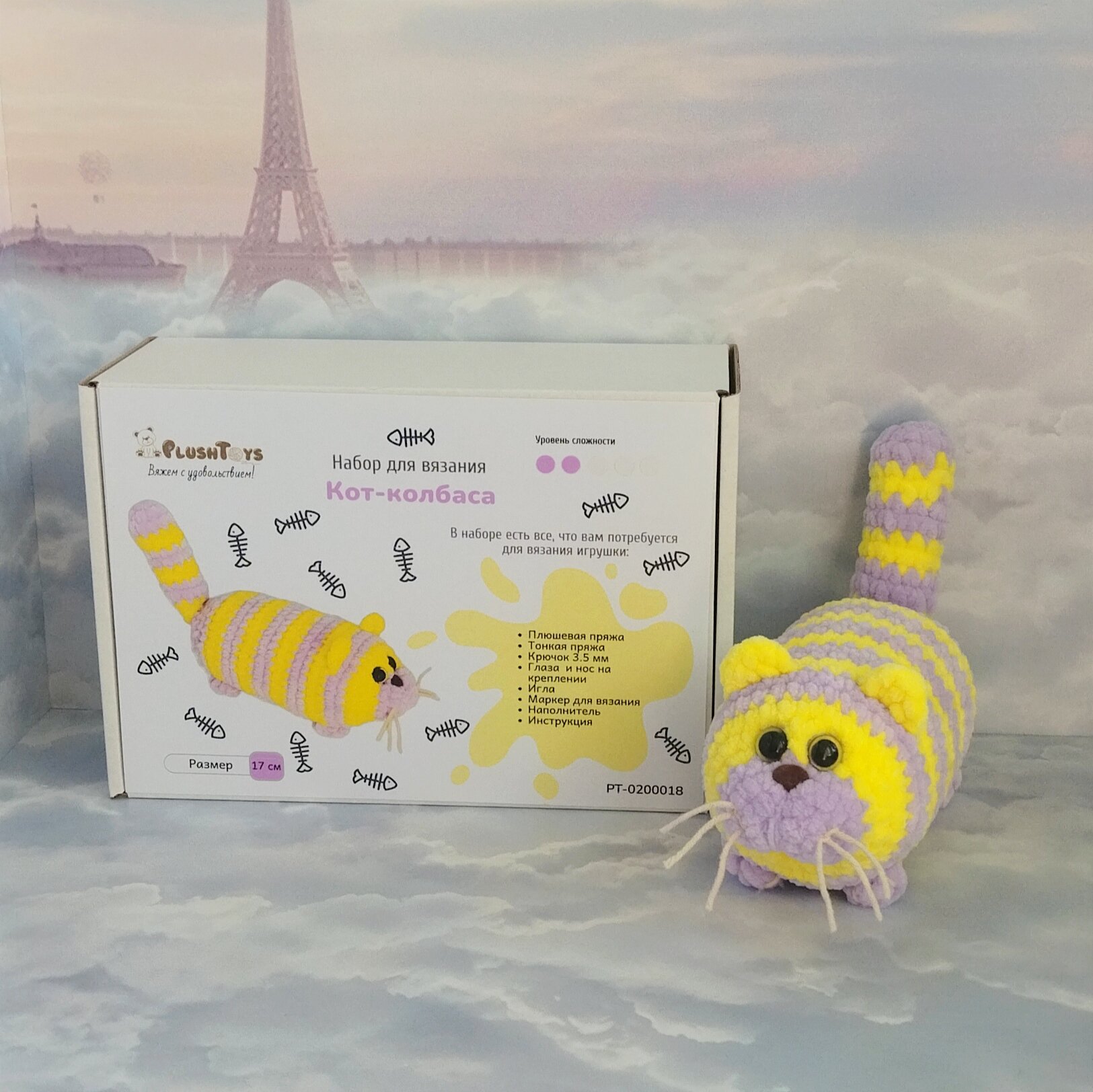 Купить Набор для вязания игрушки крючком "Кот-колбаса", амигуруми котик своими руками