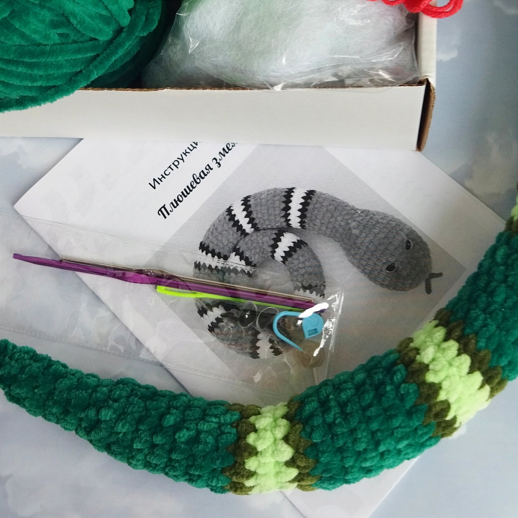 Набор для вязания игрушки крючком "Плюшевая змея"/набор для творчества/ змейка своими руками интересное: