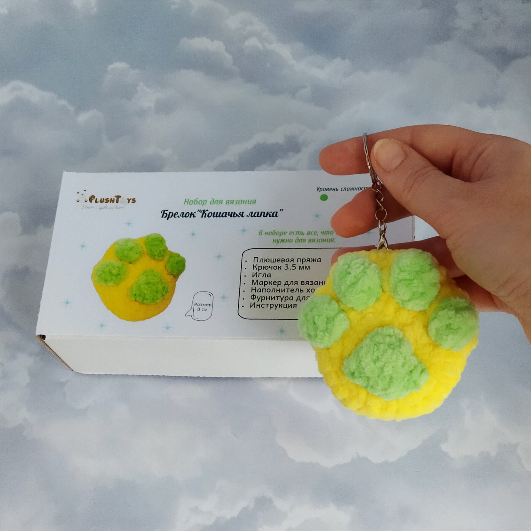Набор для вязания игрушки крючком брелок "Кошачья лапка" интересное: