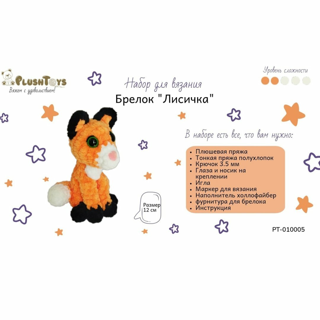 Набор для вязания крючком "Лисичка"/брелок своими руками/ набор для творчества лиса, 12 см интересное: