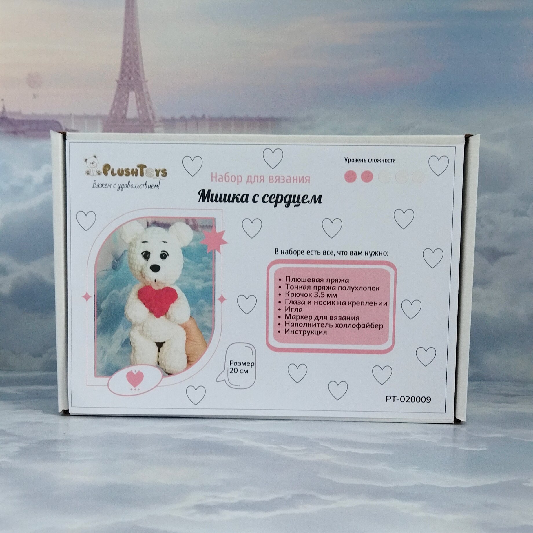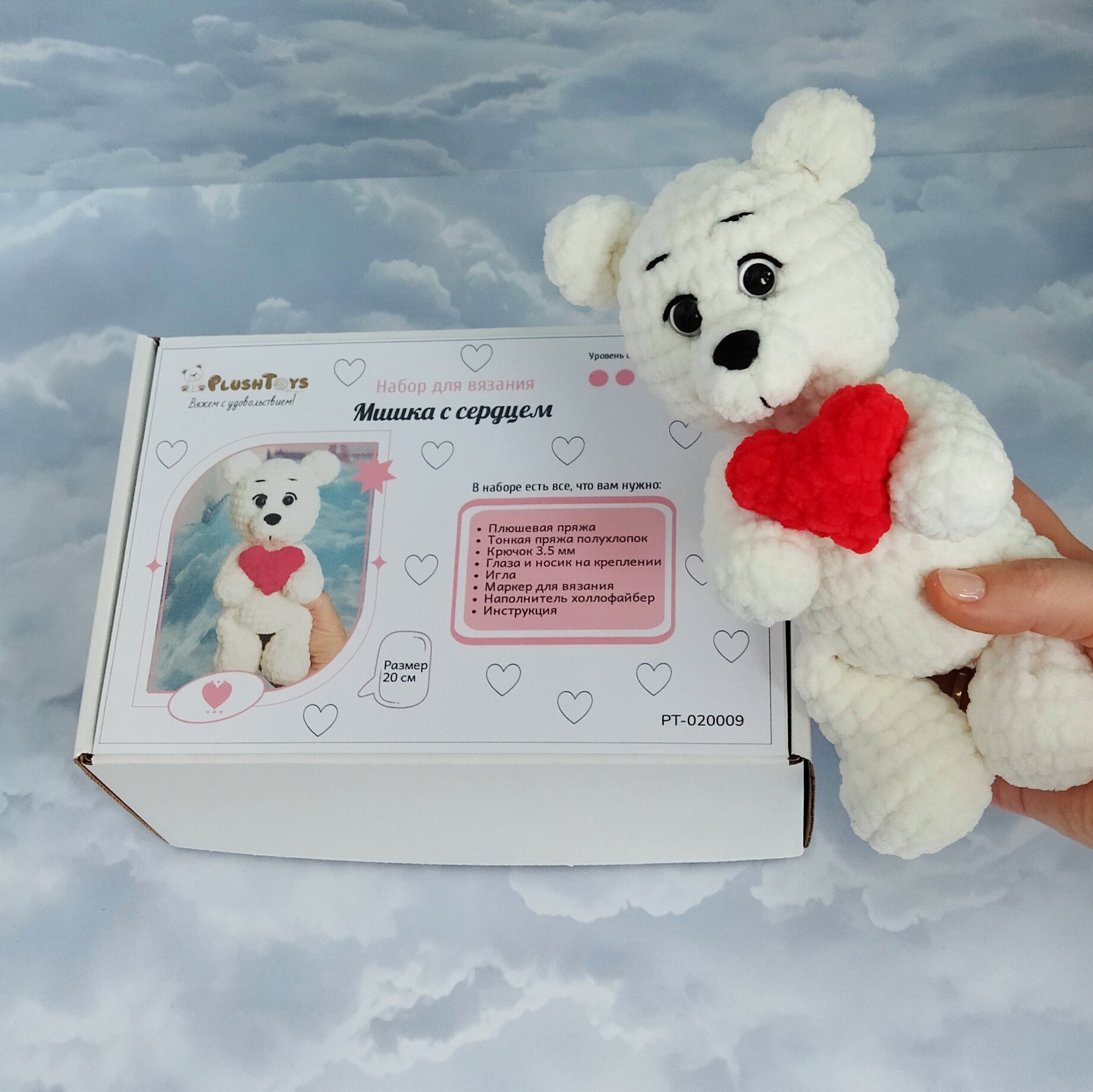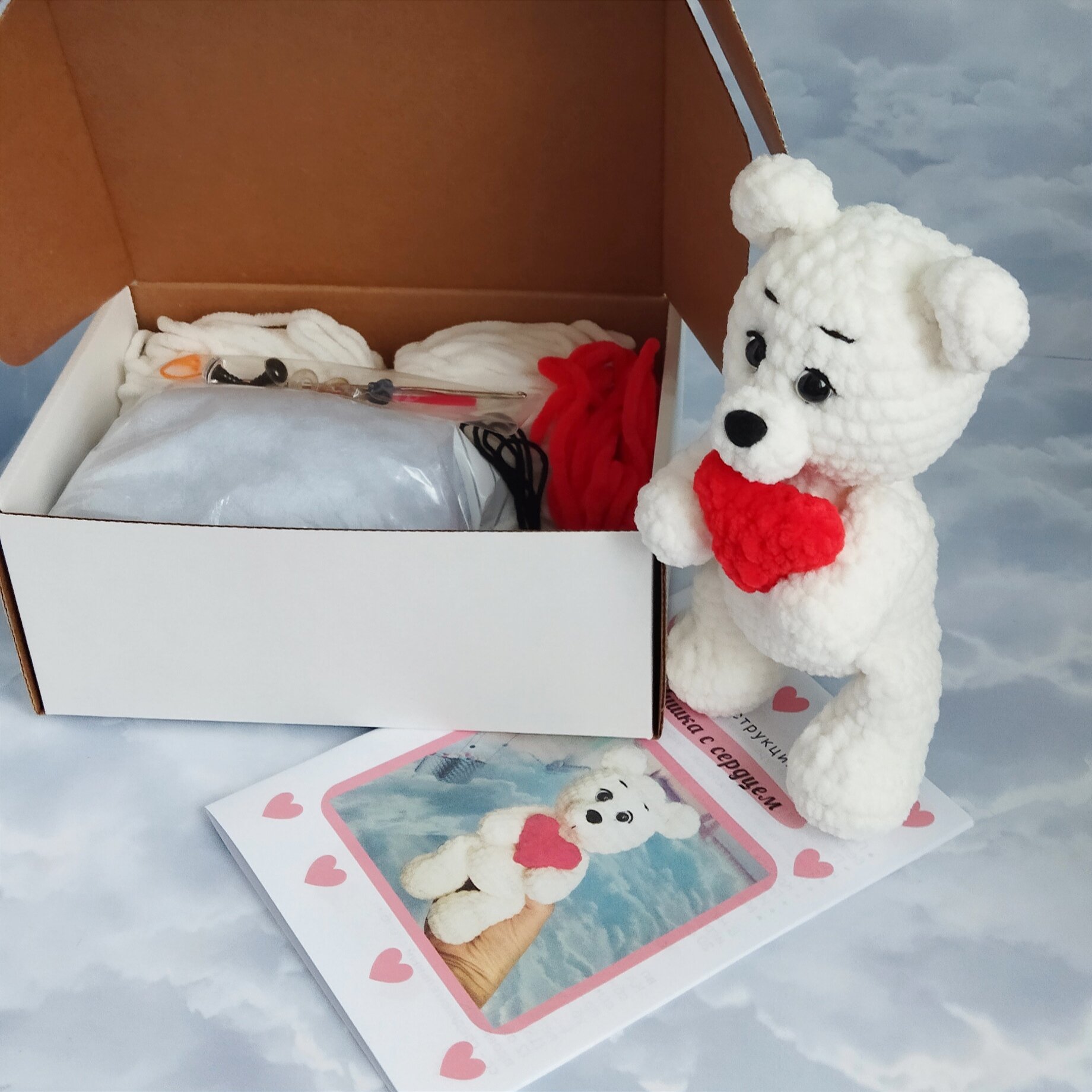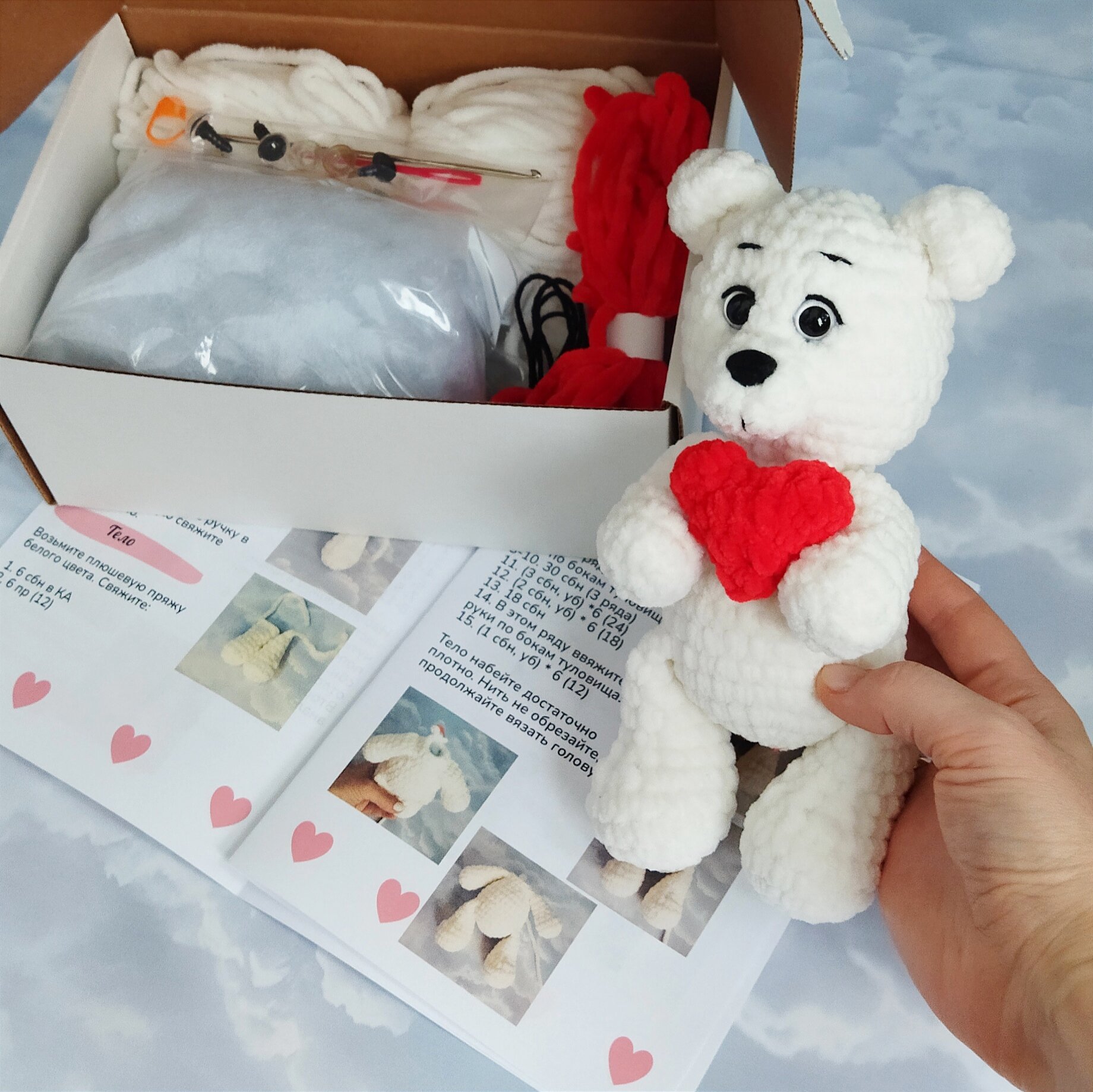 Купить Набор для вязания игрушки крючком "Мишка с сердцем", набор для рукоделия, амигуруми своими руками