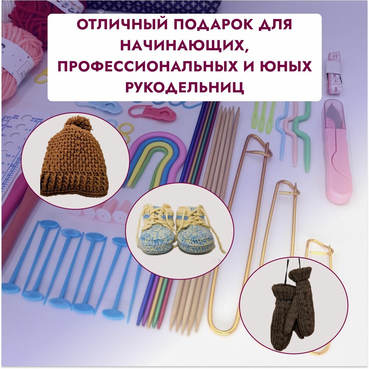 Набор спиц и крючков для вязания с пряжей 102 предмета в органайзере, набор для творчества и рукоделия интересное: