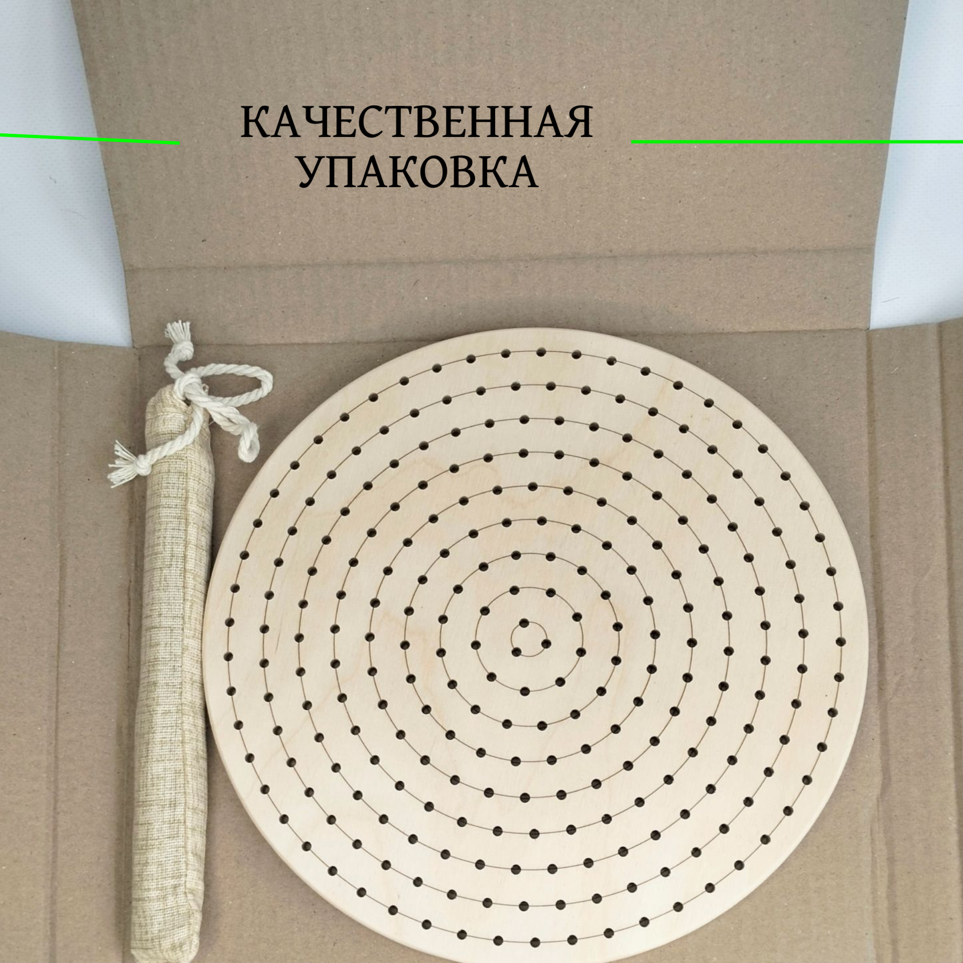 Деревянная рамка для оформления вышивки круглая большая Орнамент 22 см.