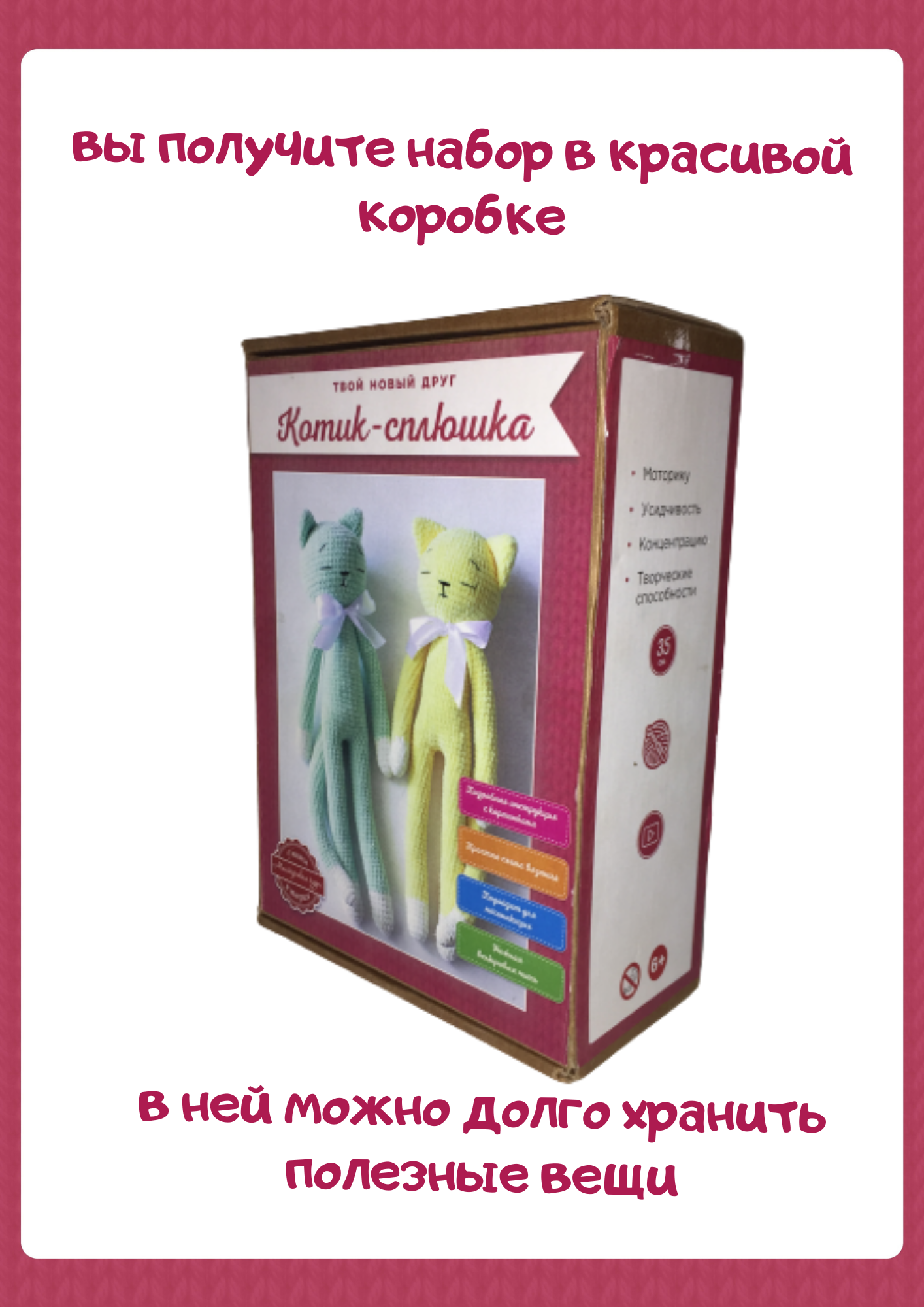 Набор для вязания "Котик-сплюшка" серый интересное: