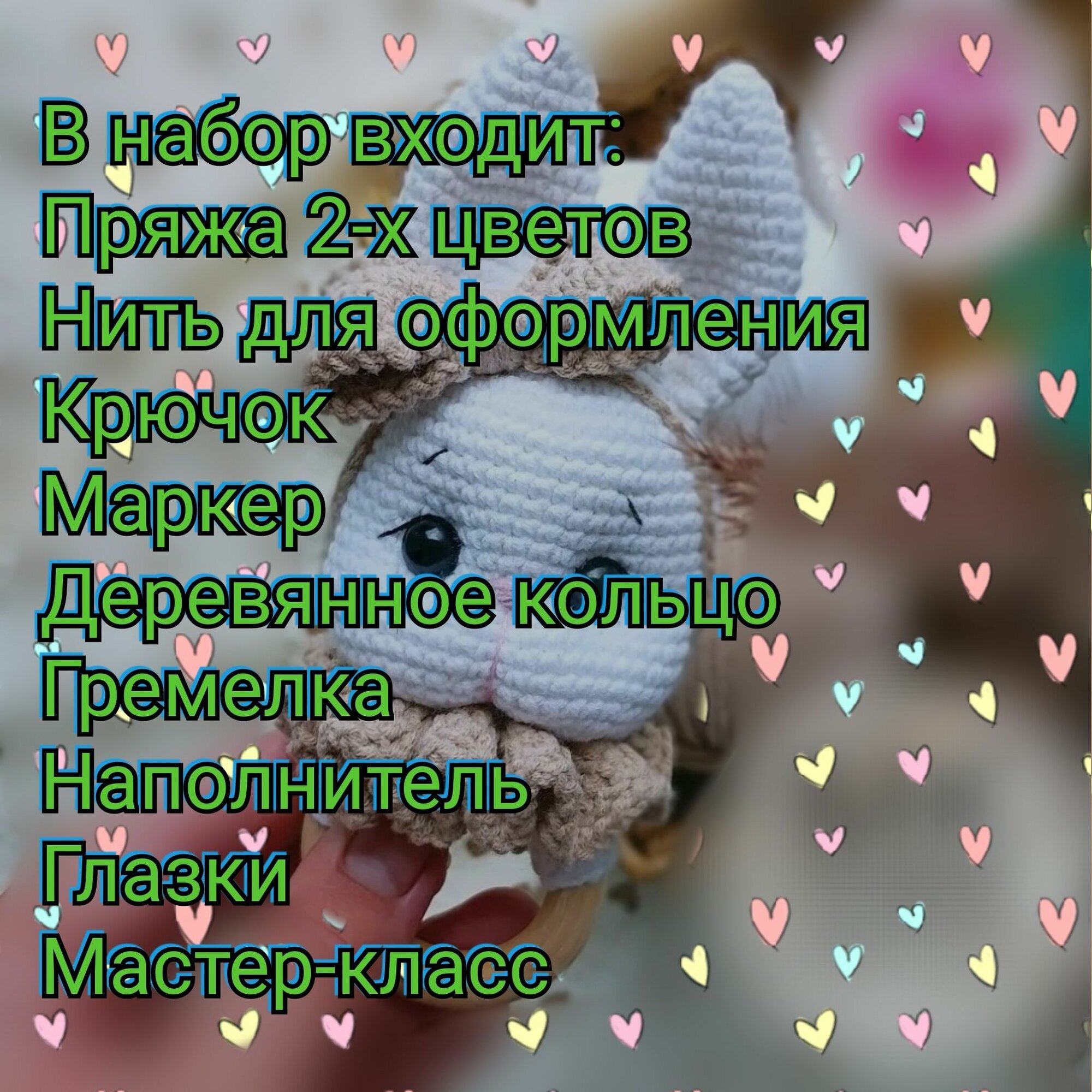 Набор для вязания грызунка-погремушки зая с бантом интересное: