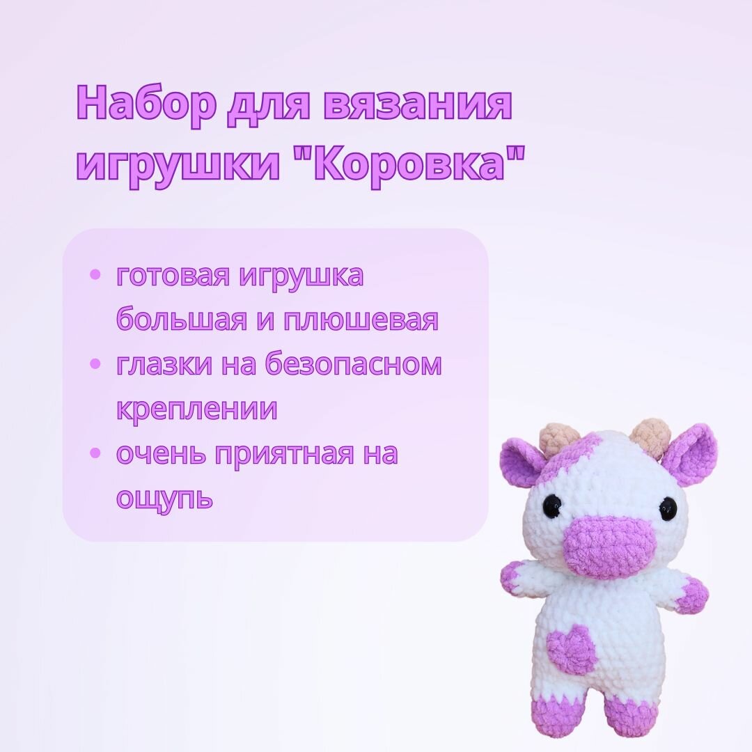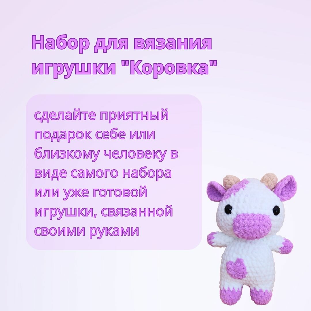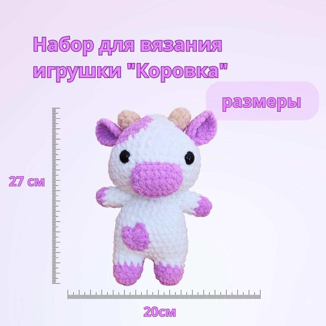 Набор для вязания плюшевой игрушки "Коровка" крючком с видео мастер-классом для начинающих интересное: