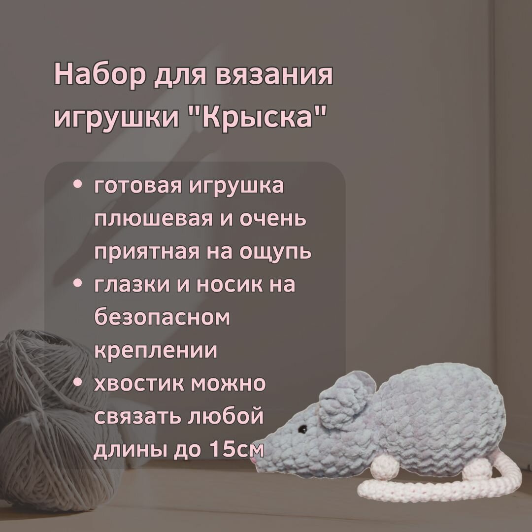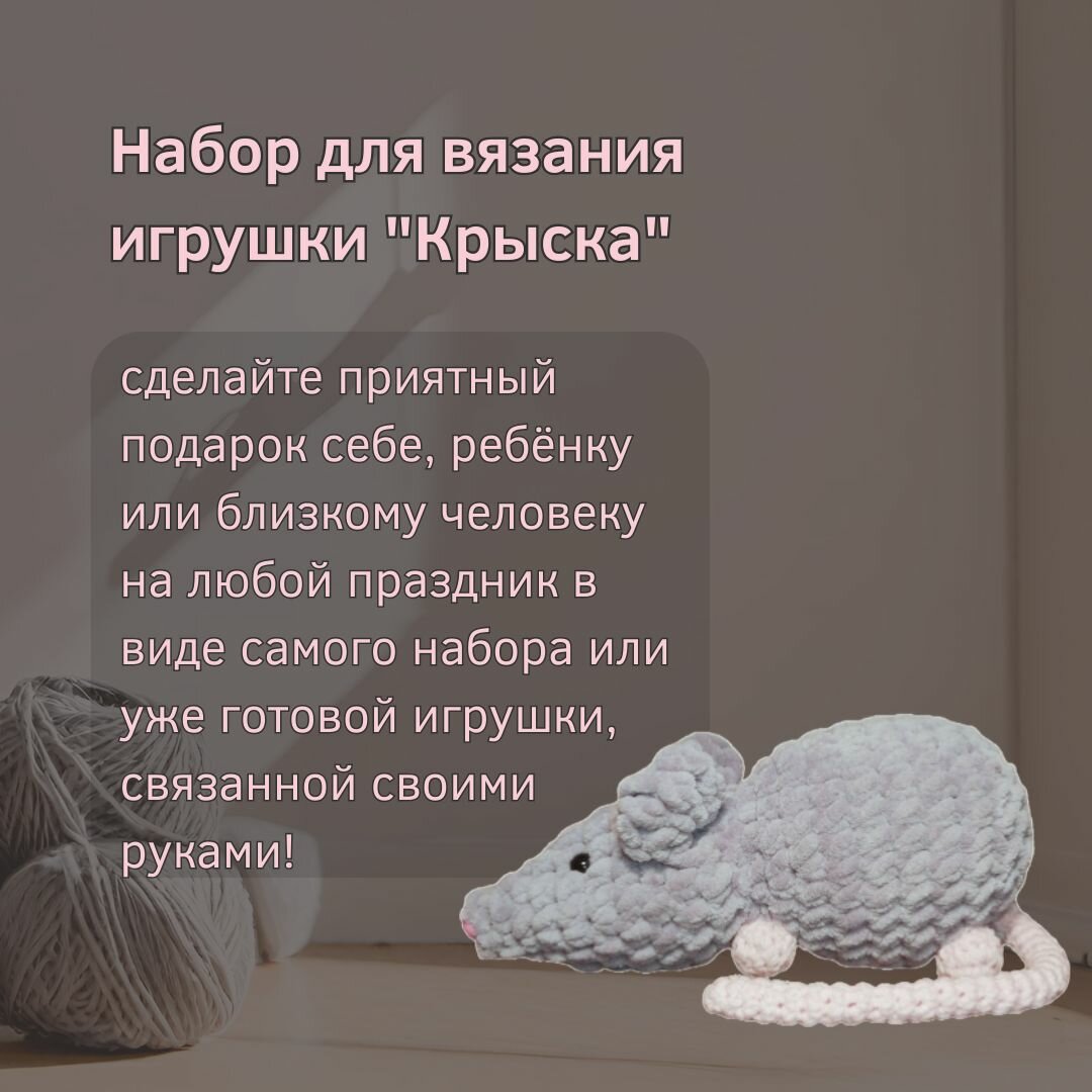 Набор для вязания плюшевой игрушки "Крыска" крючком с видео мастер-классом для начинающих интересное: