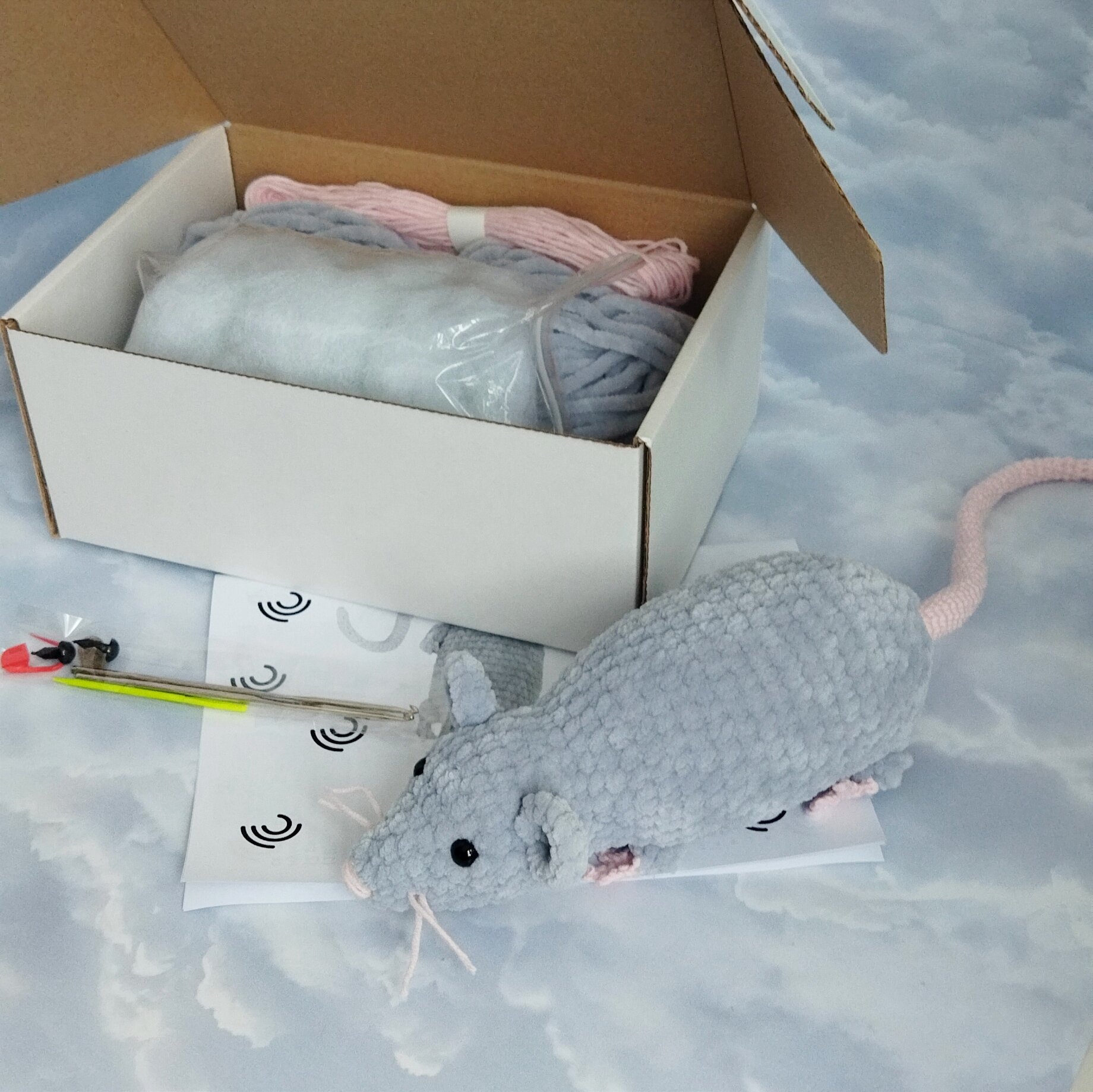 Набор для вязания крючком "Крыса" серая интересное: