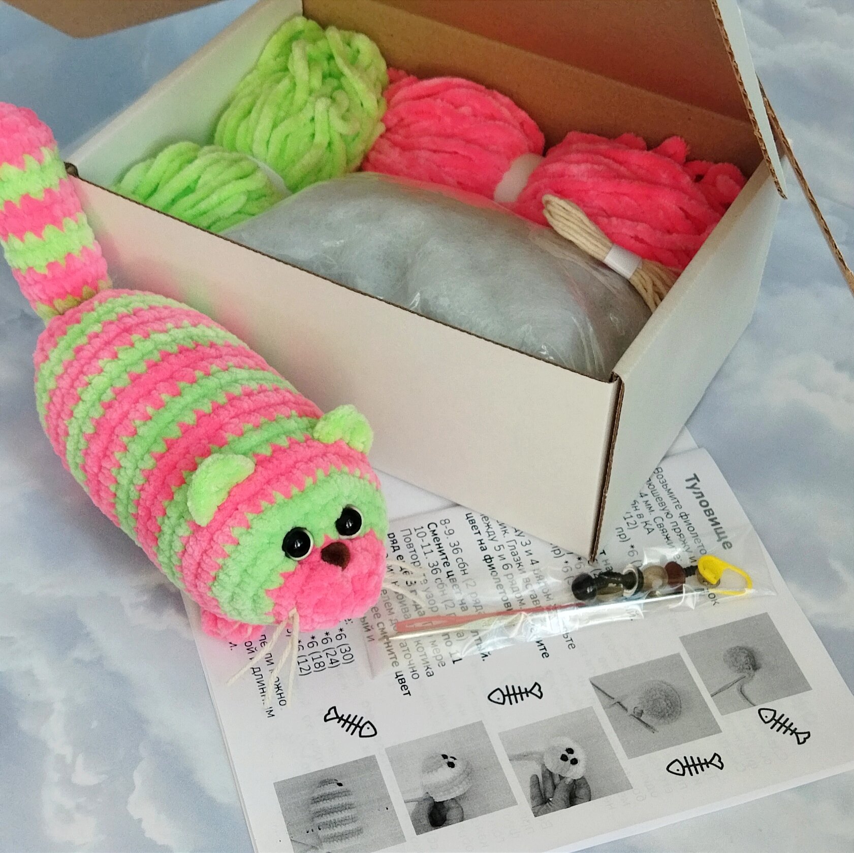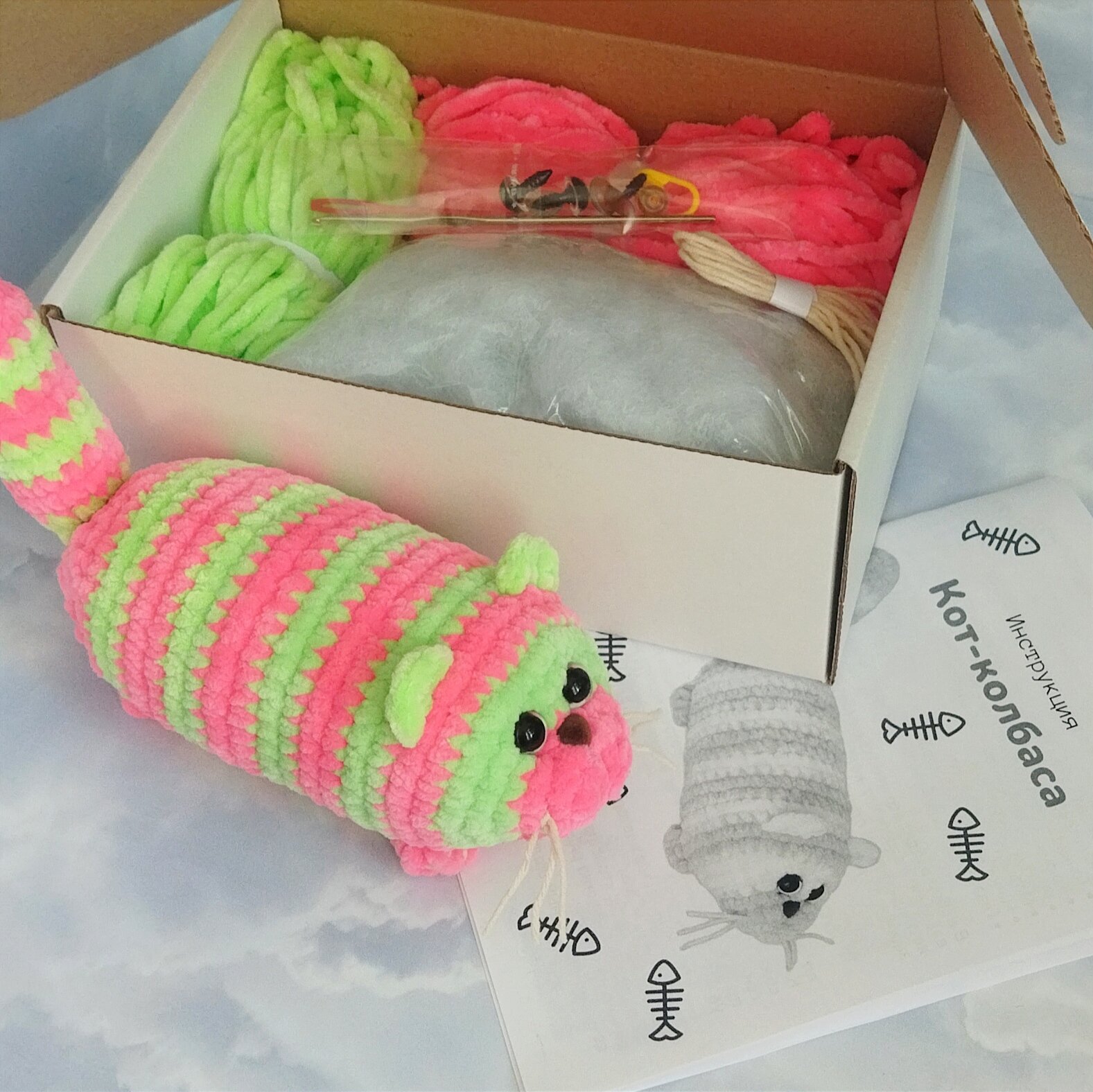 Ниже Вы можете прочитать отзывы на Набор для вязания игрушки крючком "Кот Колбаса", 17см, розово-салатовый, ознакомится с подробными характеристиками, посмотреть интересные обзоры и фотографии на Набор для вязания игрушки крючком "Кот Колбаса", 17см, розово-салатовый.