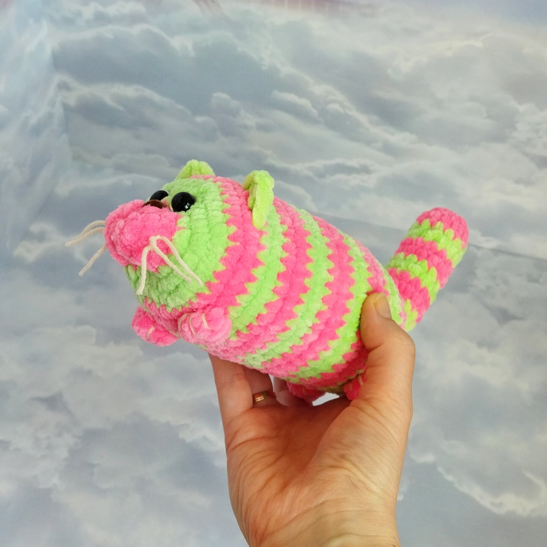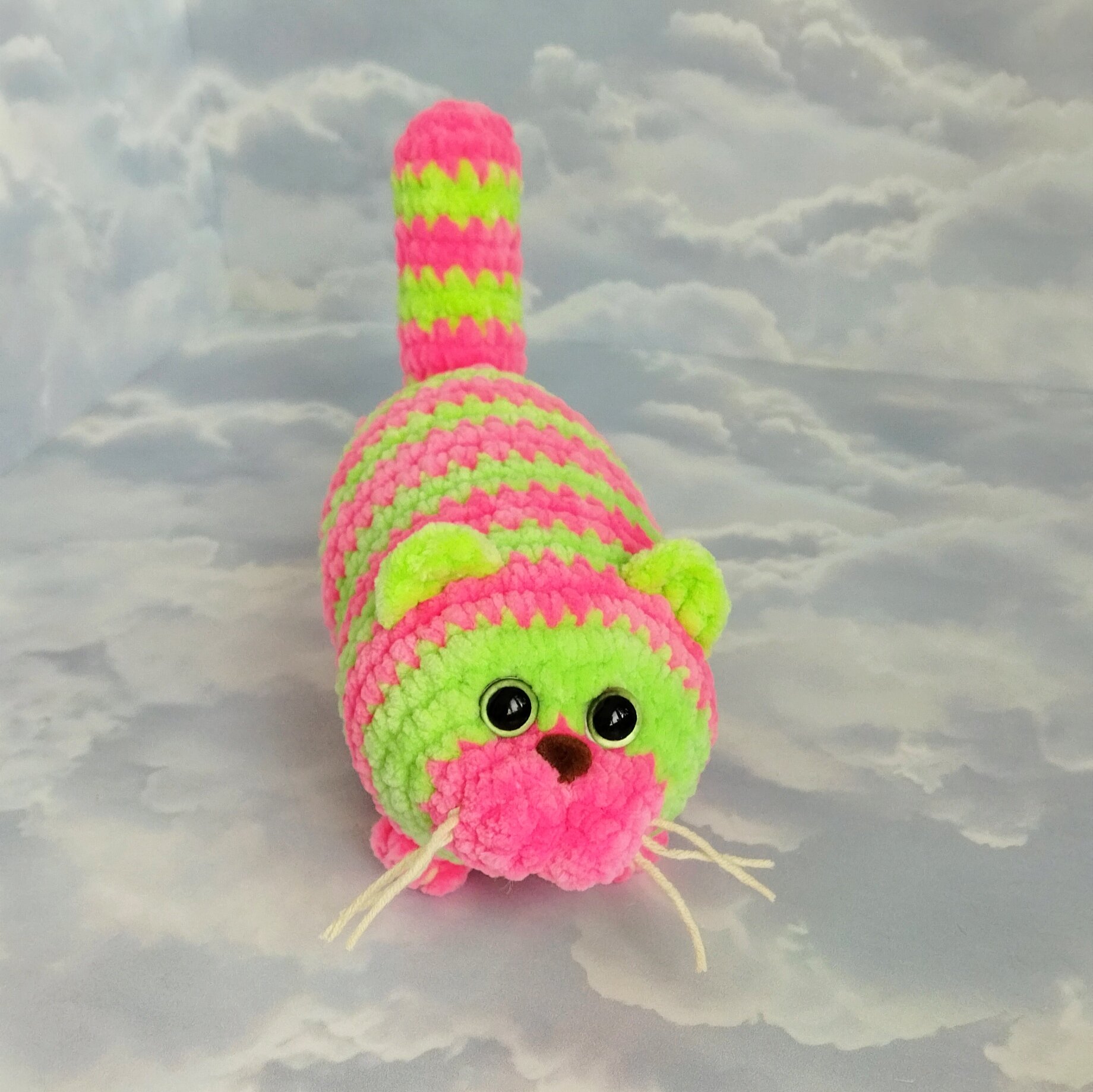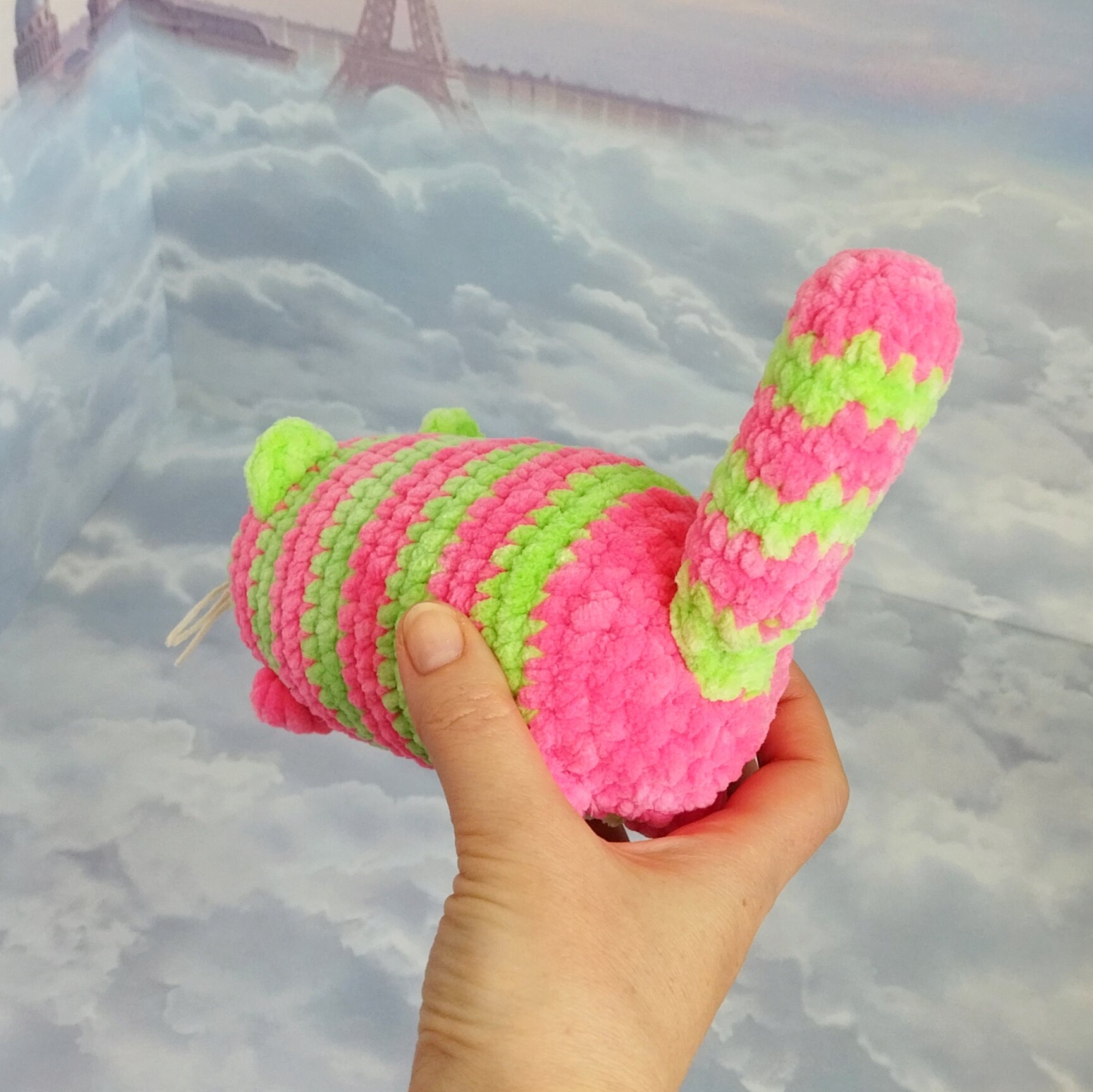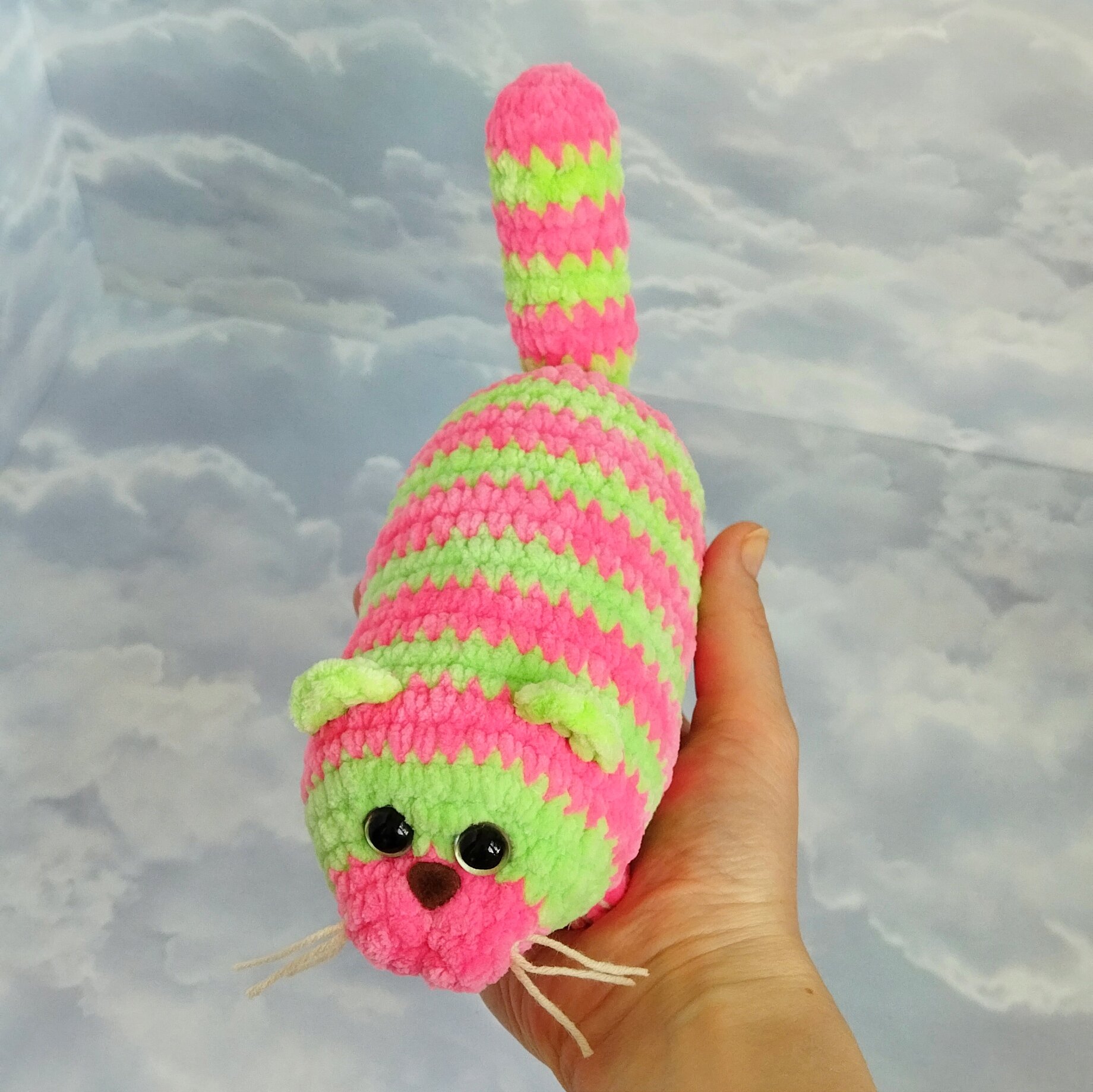 Купить Набор для вязания игрушки крючком "Кот Колбаса", 17см, розово-салатовый
