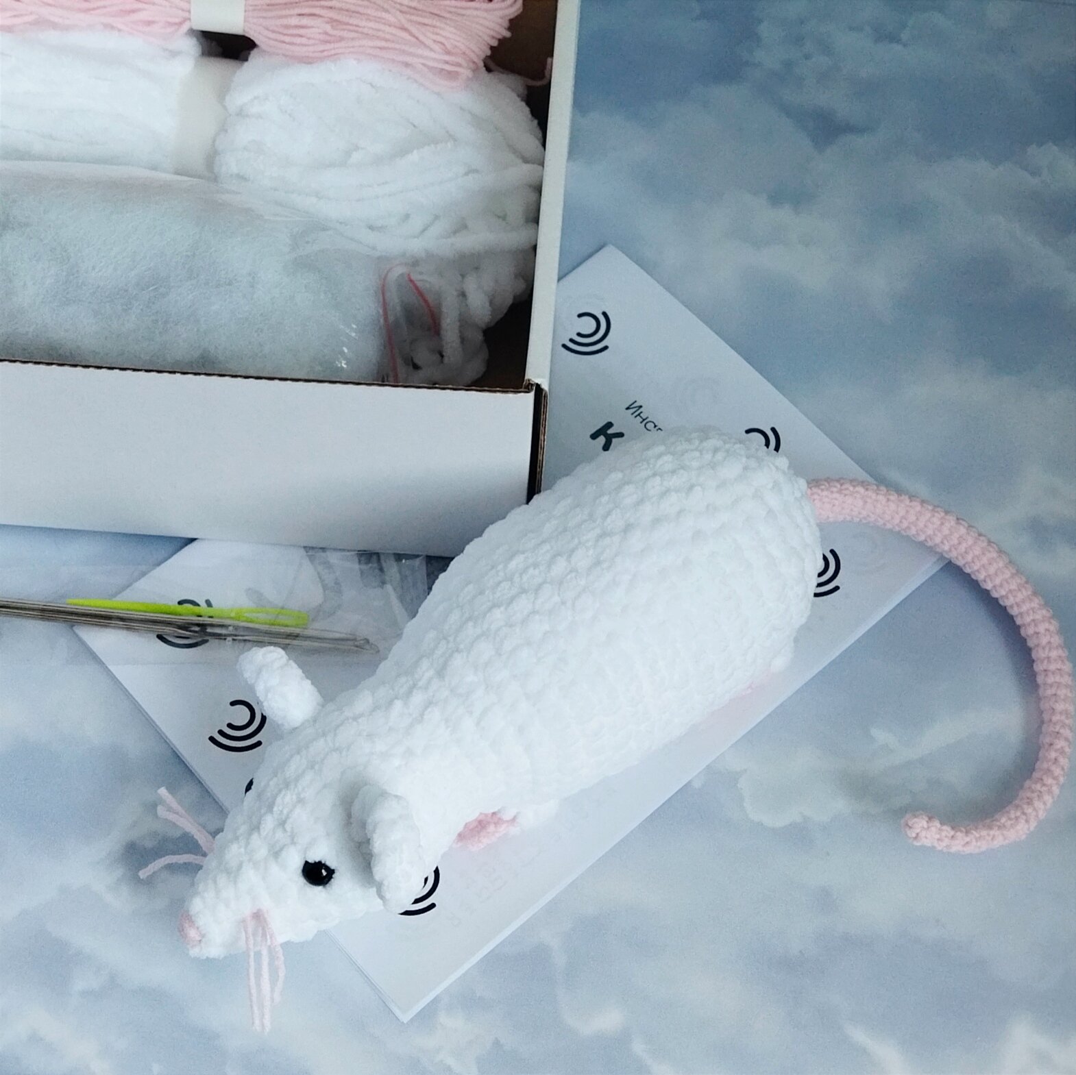 Набор для вязания крючком "Крыса" белая интересное:
