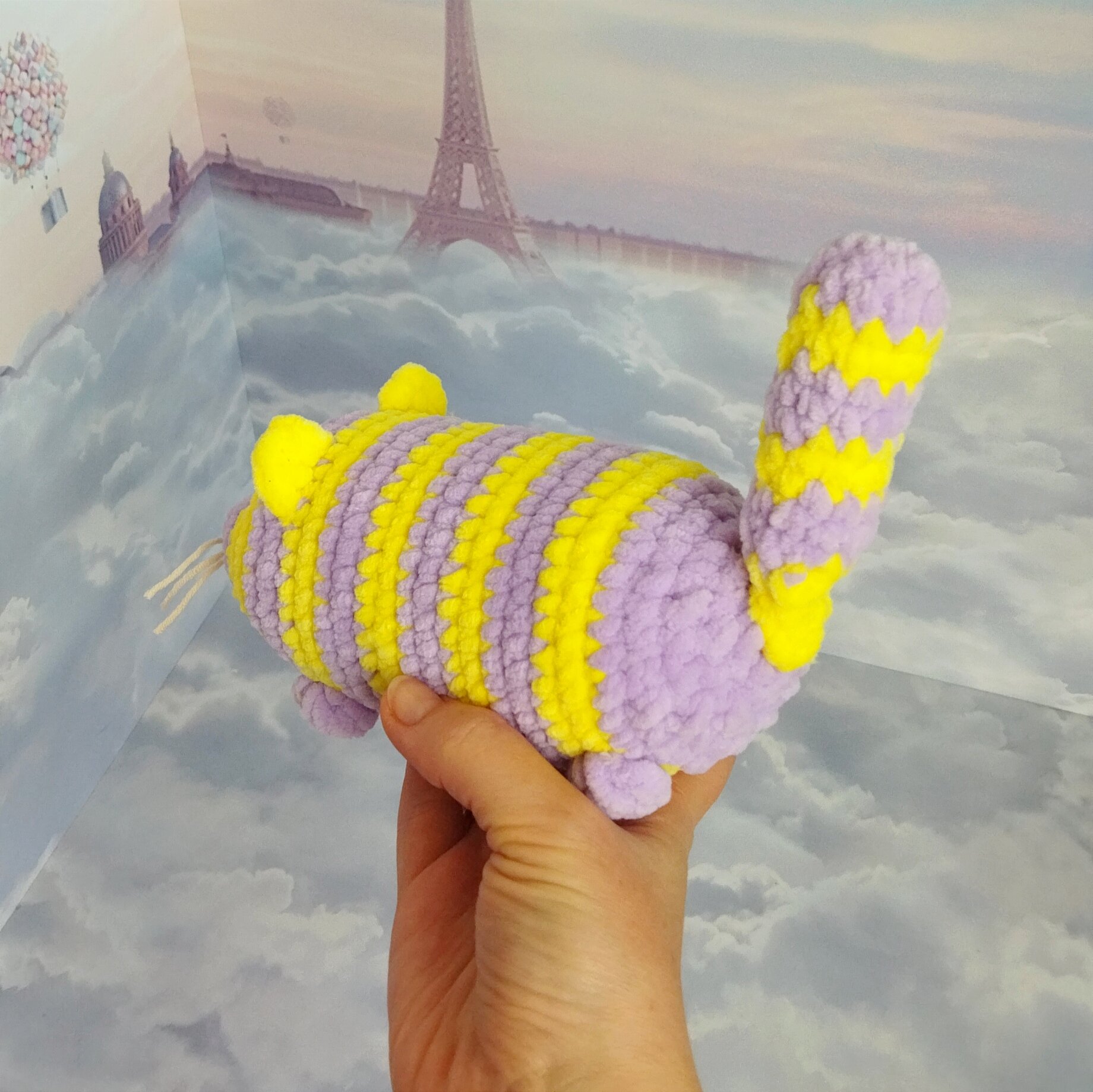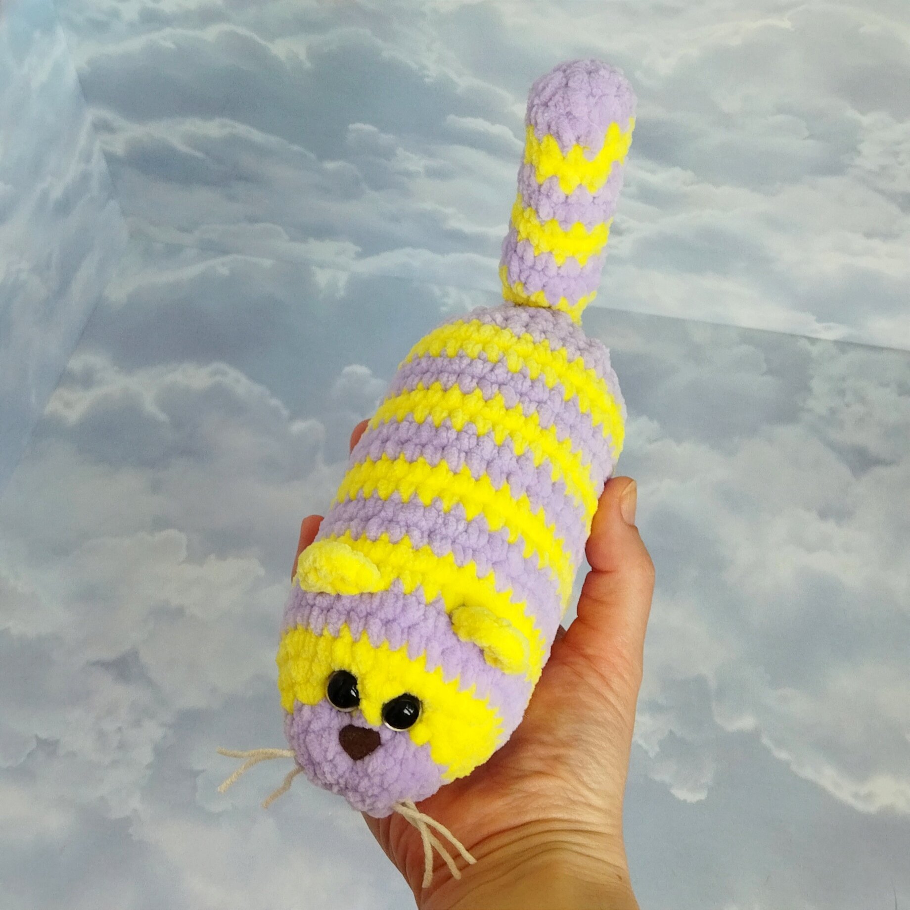 Купить Набор для вязания игрушки крючком "Кот Колбаса", 17см, желто-фиолетовый