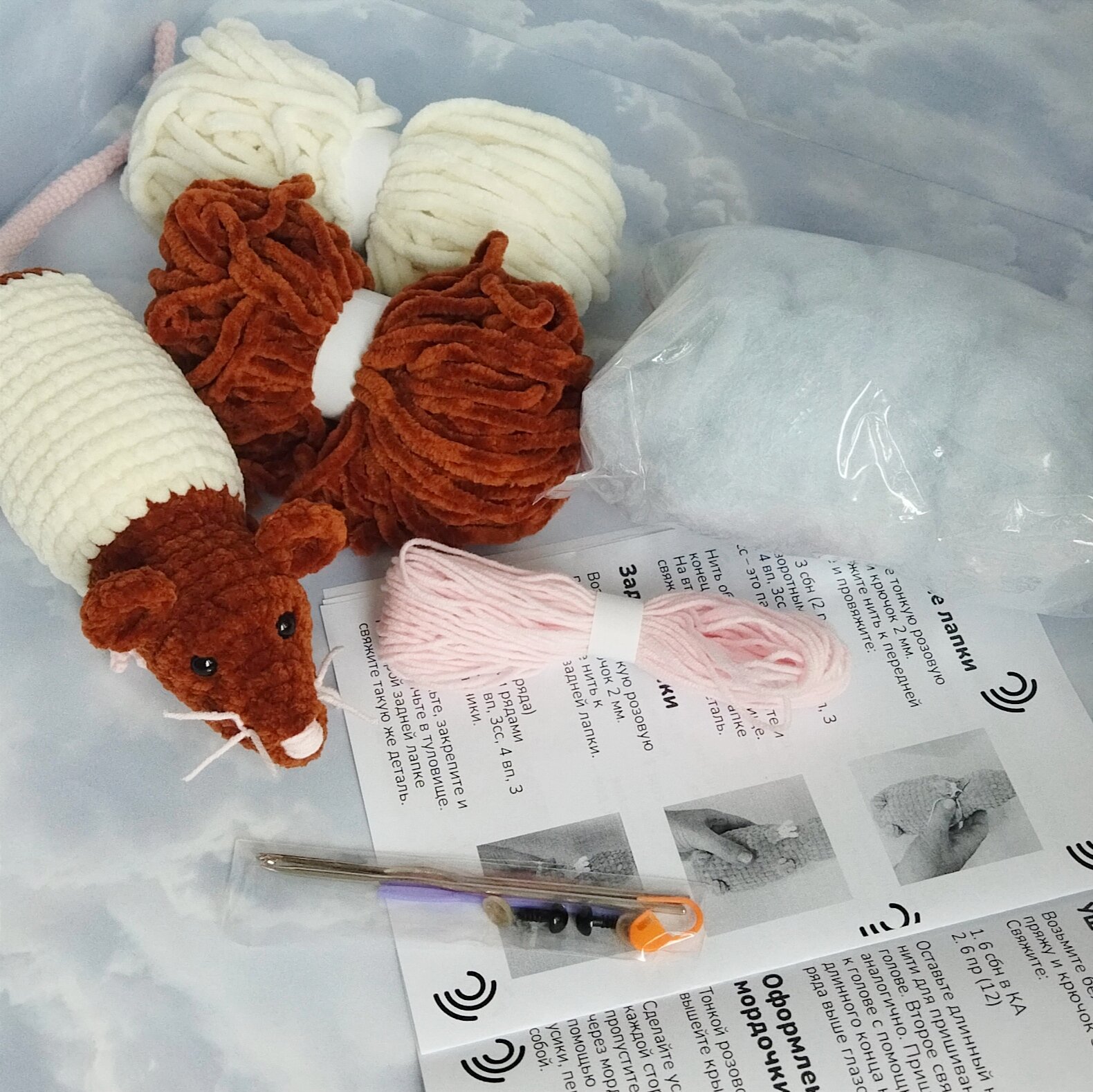 Набор для вязания крючком "Крыса", коричнево-бежевая интересное:
