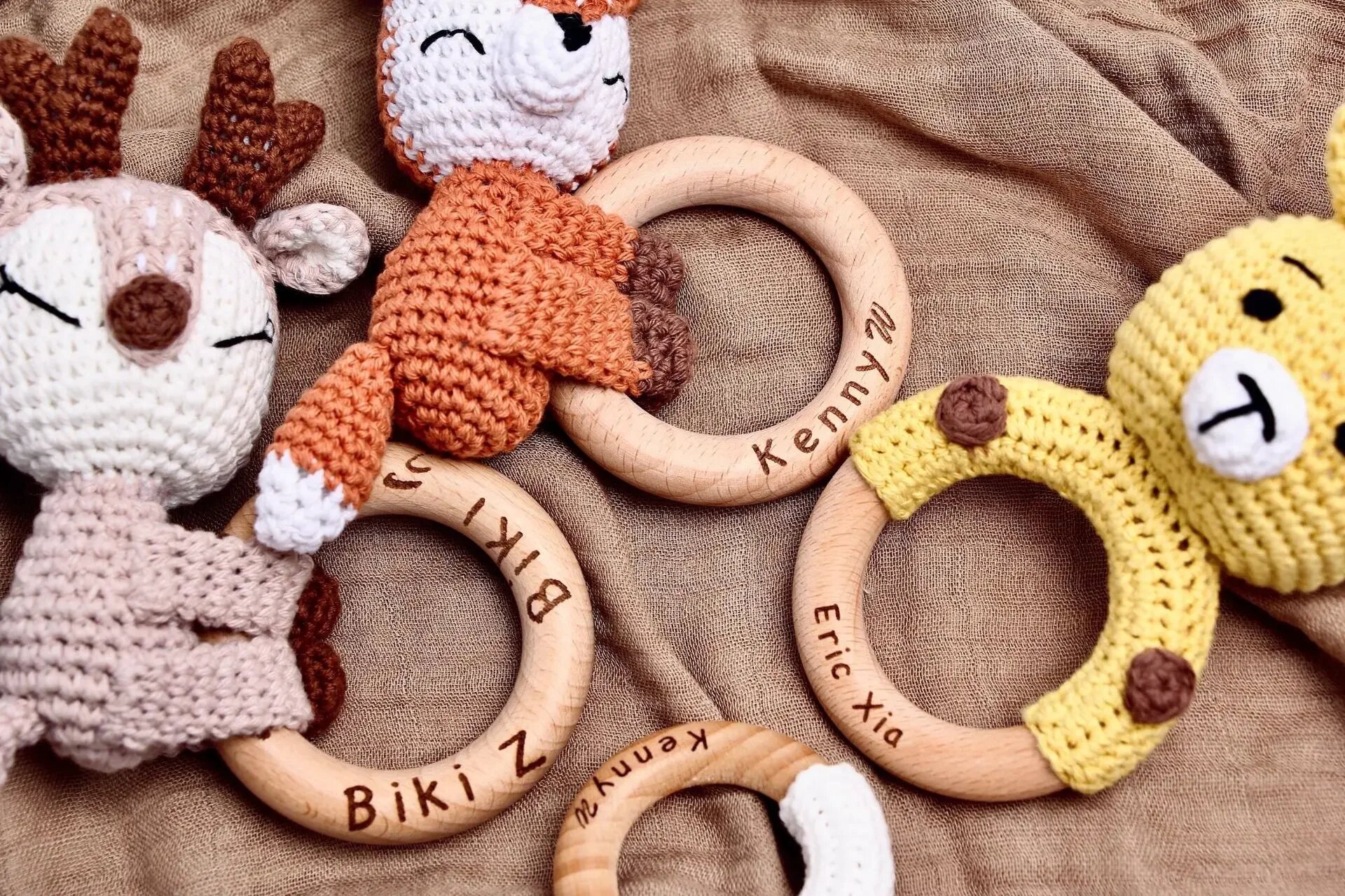 Набор игрушек "Взрывной ребенок", для новорожденных, вязаные крючком, деревянные, синий кролик