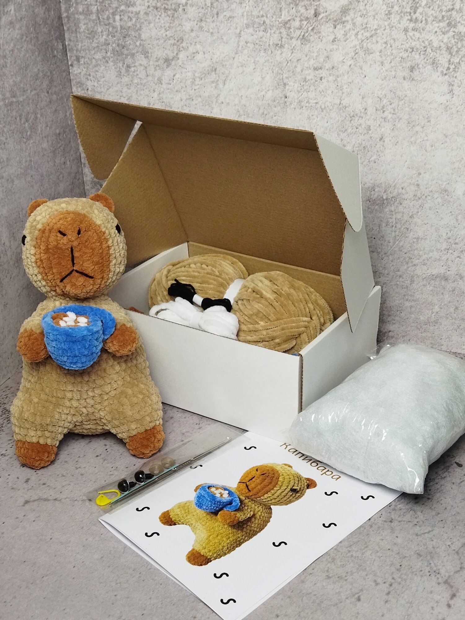 Купить Набор для вязания крючком "Капибара с чашкой", 21см