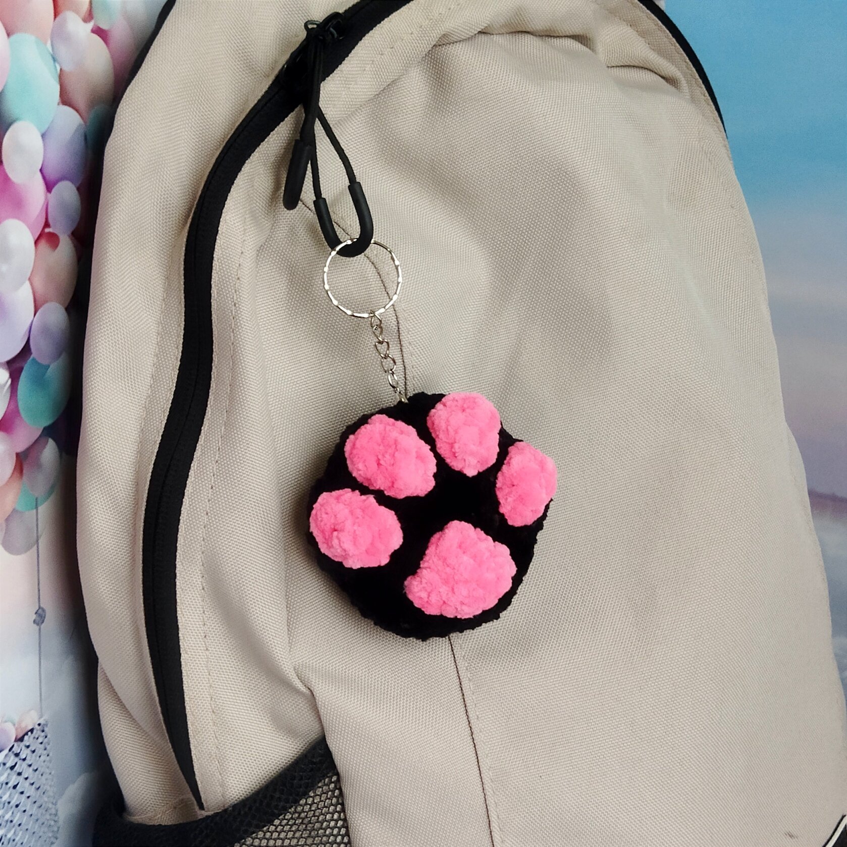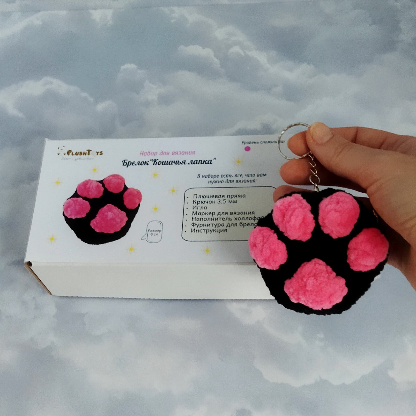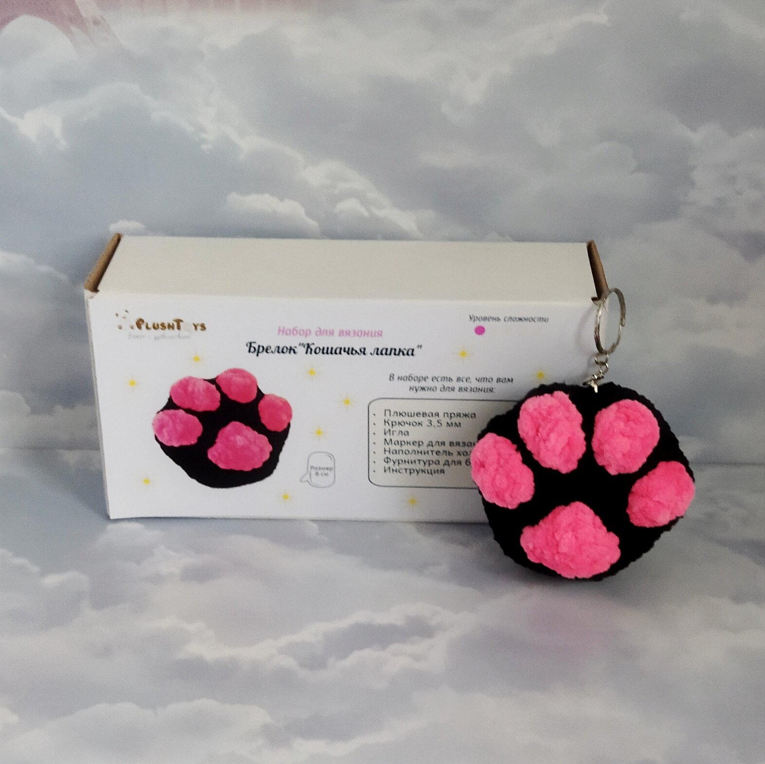 Набор для вязания игрушки крючком брелок "Кошачья лапка", Черно-розовая интересное: