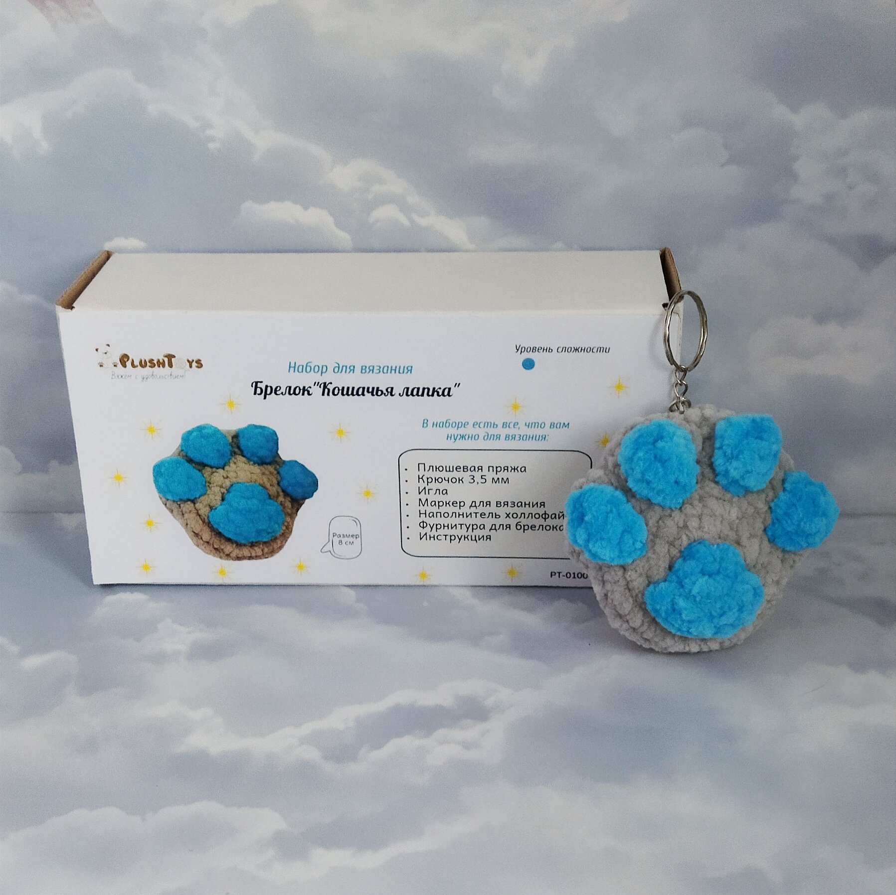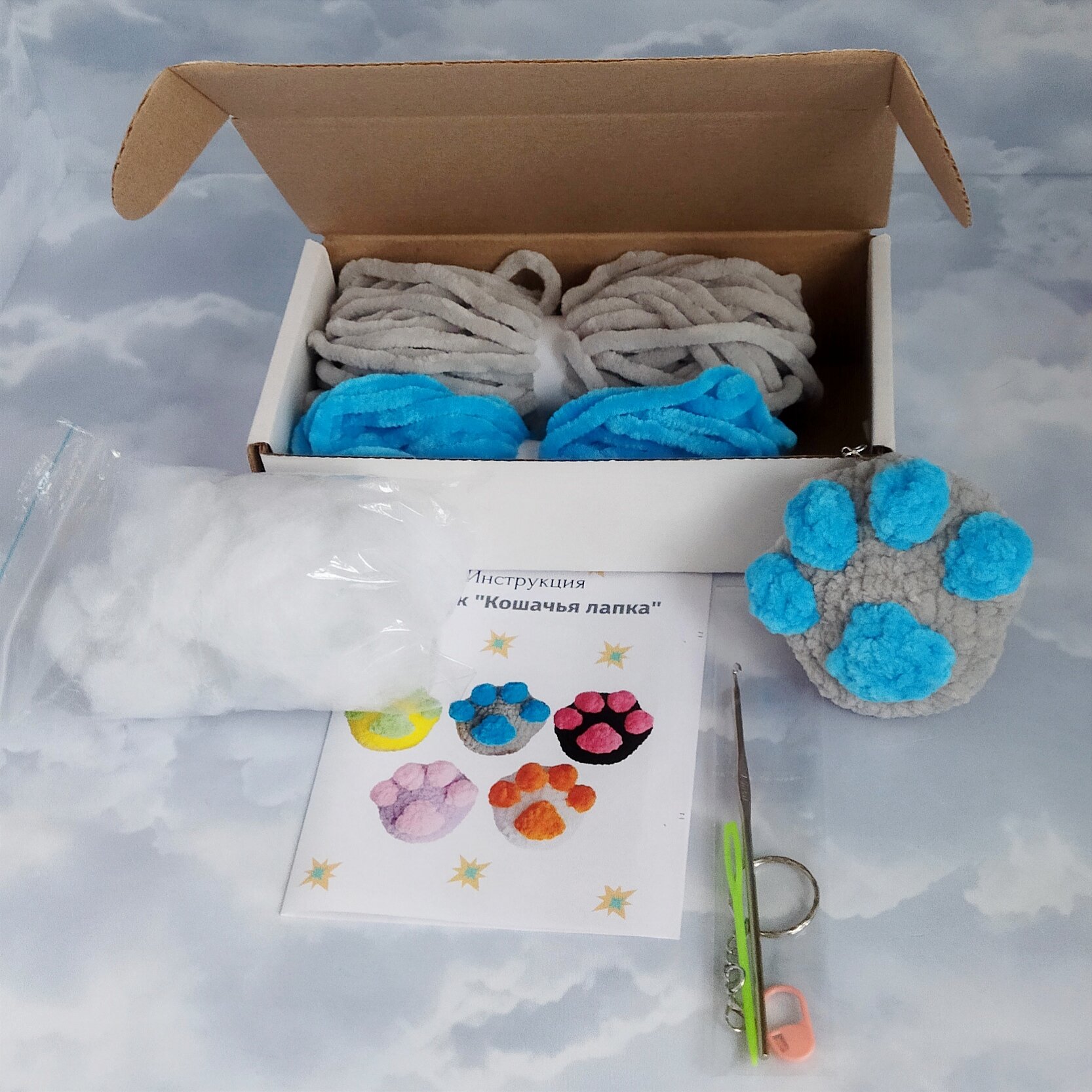 Купить Набор для вязания игрушки крючком брелок "Кошачья лапка", Серо-голубая