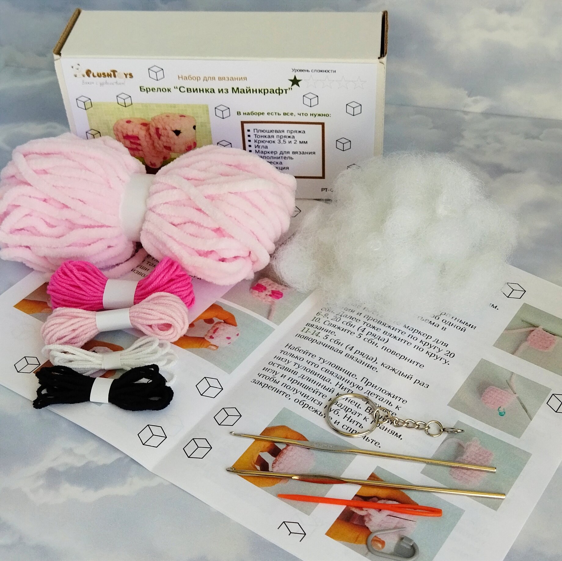 Набор для вязания крючком брелок "Свинка из Майнкрафт" интересное: