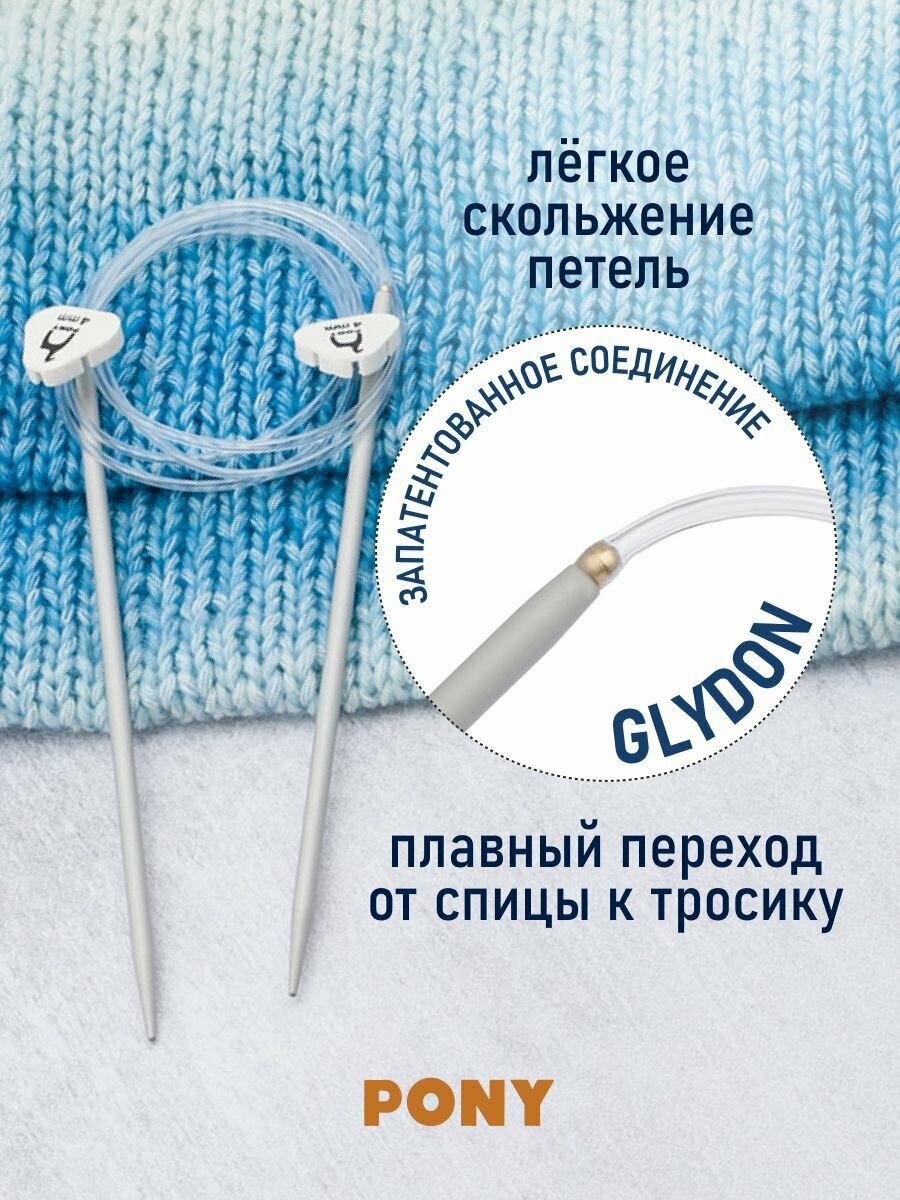 Спицы вязальные гибкие с фиксатором 3,5 мм*60 см, алюминий, 2 шт, PONY, 65207 (65607)