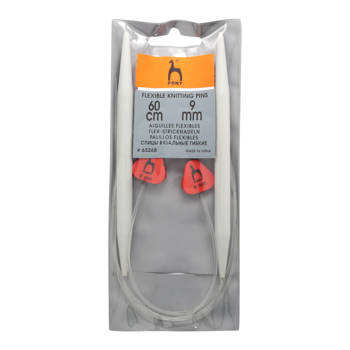 Купить Спицы вязальные гибкие с фиксатором 9 мм*60 см, пластик, 2 шт, PONY