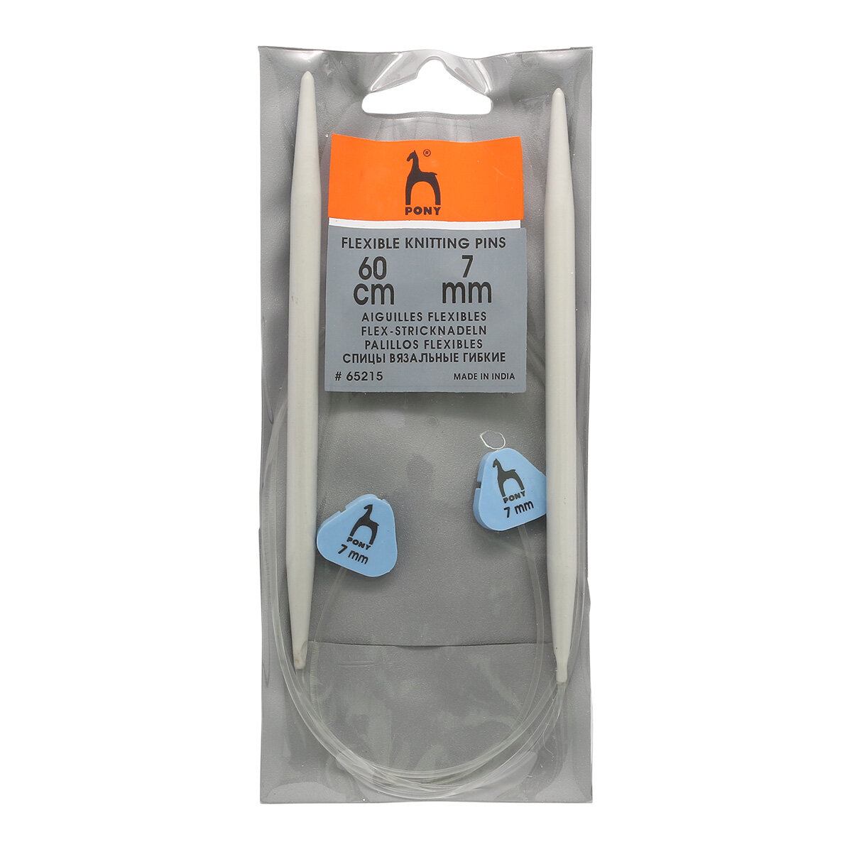 Купить Спицы вязальные гибкие с фиксатором 7 мм*60 см, алюминий, 2 шт, PONY