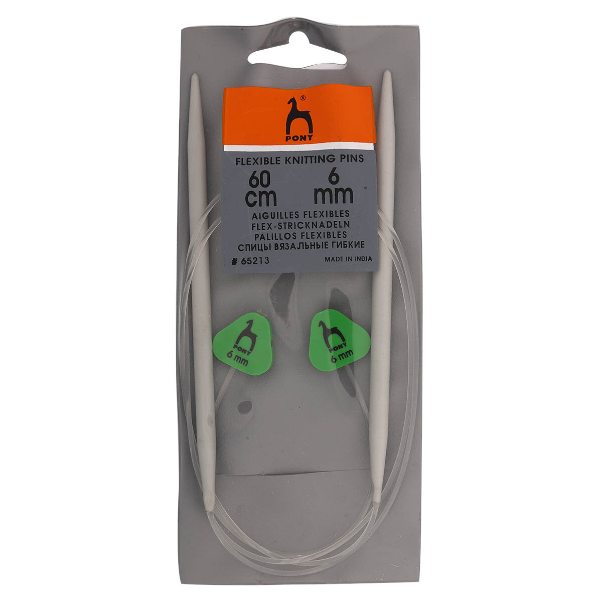 Купить Спицы вязальные гибкие с фиксатором 6 мм*60 см, алюминий, 2 шт, PONY