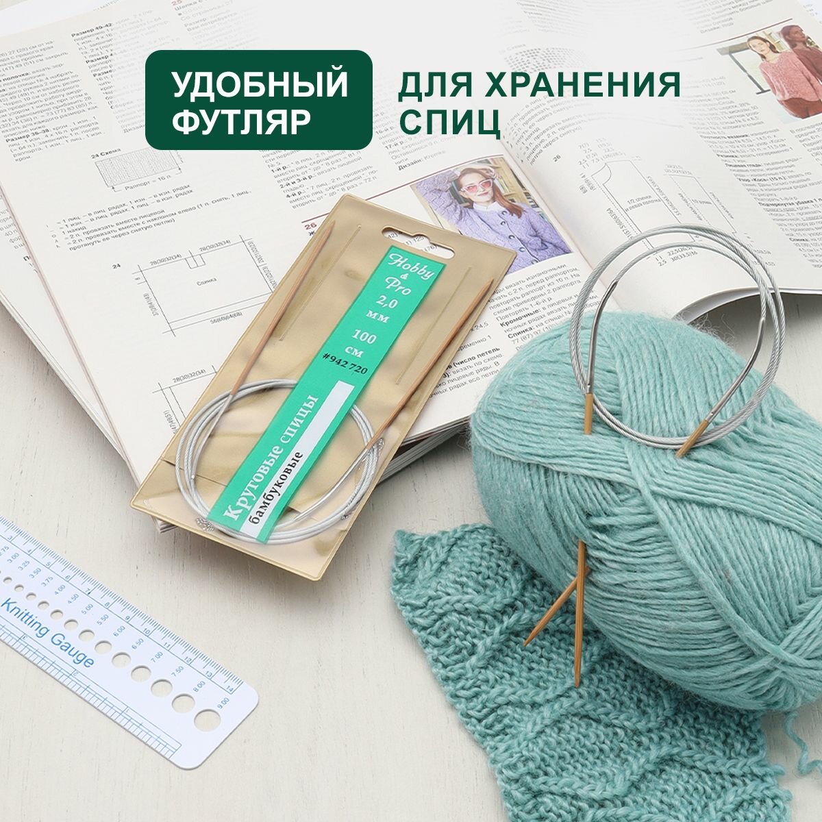 Спицы для вязания круговые 100 см*2 мм, бамбуковые с тросиком (металл), Hobby&Pro интересное: