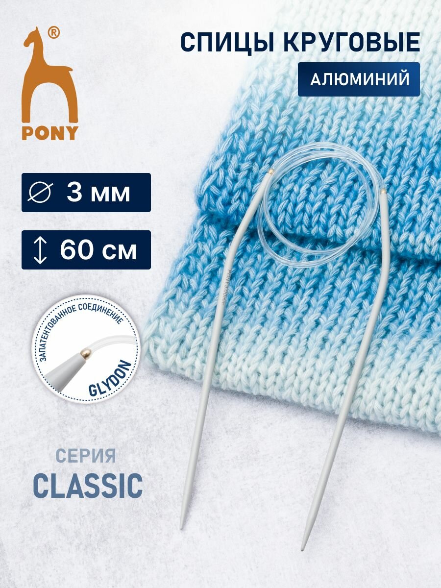 Купить Спицы для вязания круговые 3 мм*60 см, алюминиевые, PONY Classic