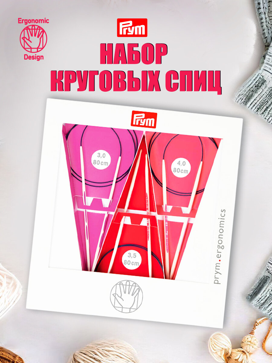 Набор спиц круговых Prym Ergonomics, 3-4мм*80см, 3 шт (пластик) интересное: