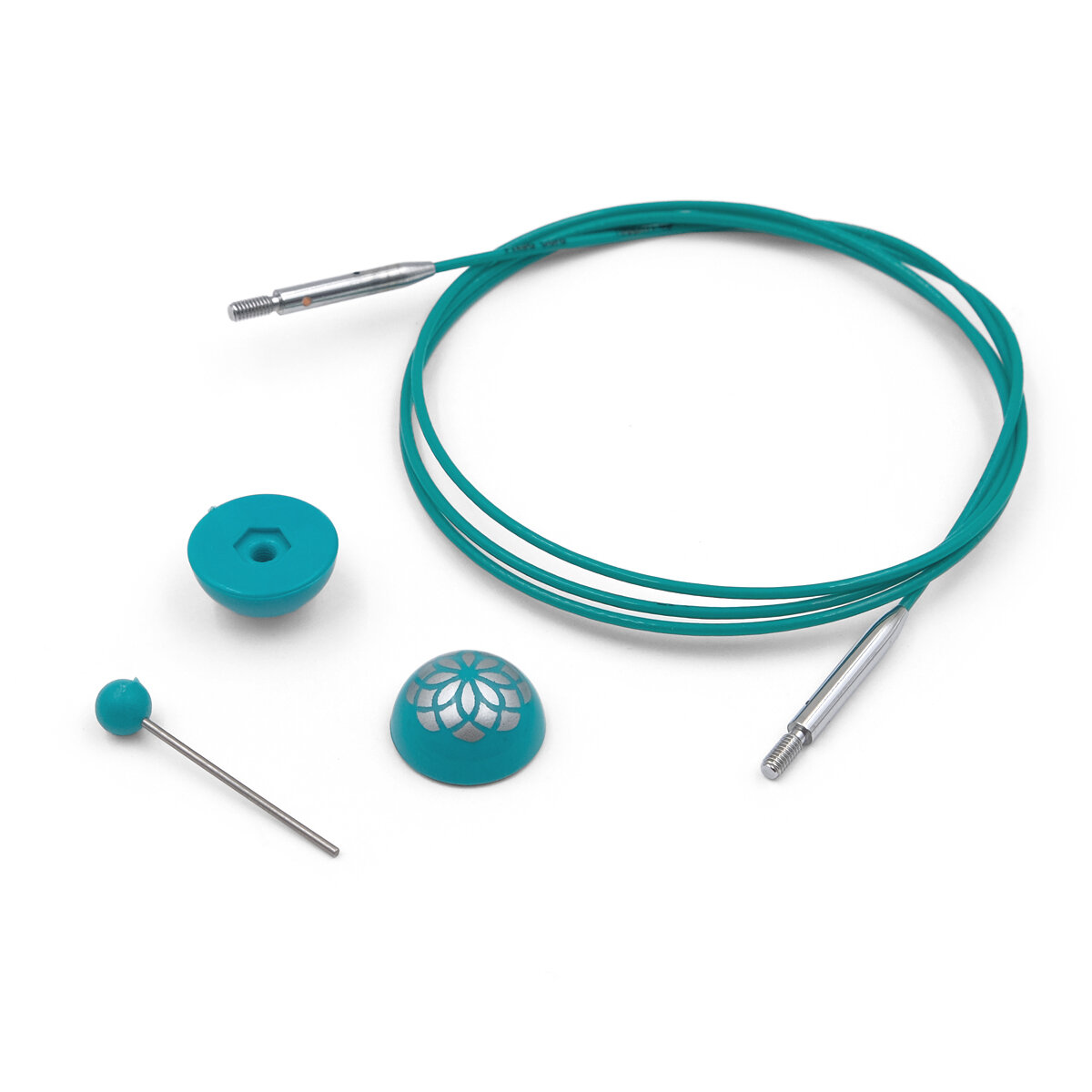 Тросик для съемных спиц Mindful, 20 см, нержавеющая сталь с нейлоновым покрытием, бирюзовый, KnitPro