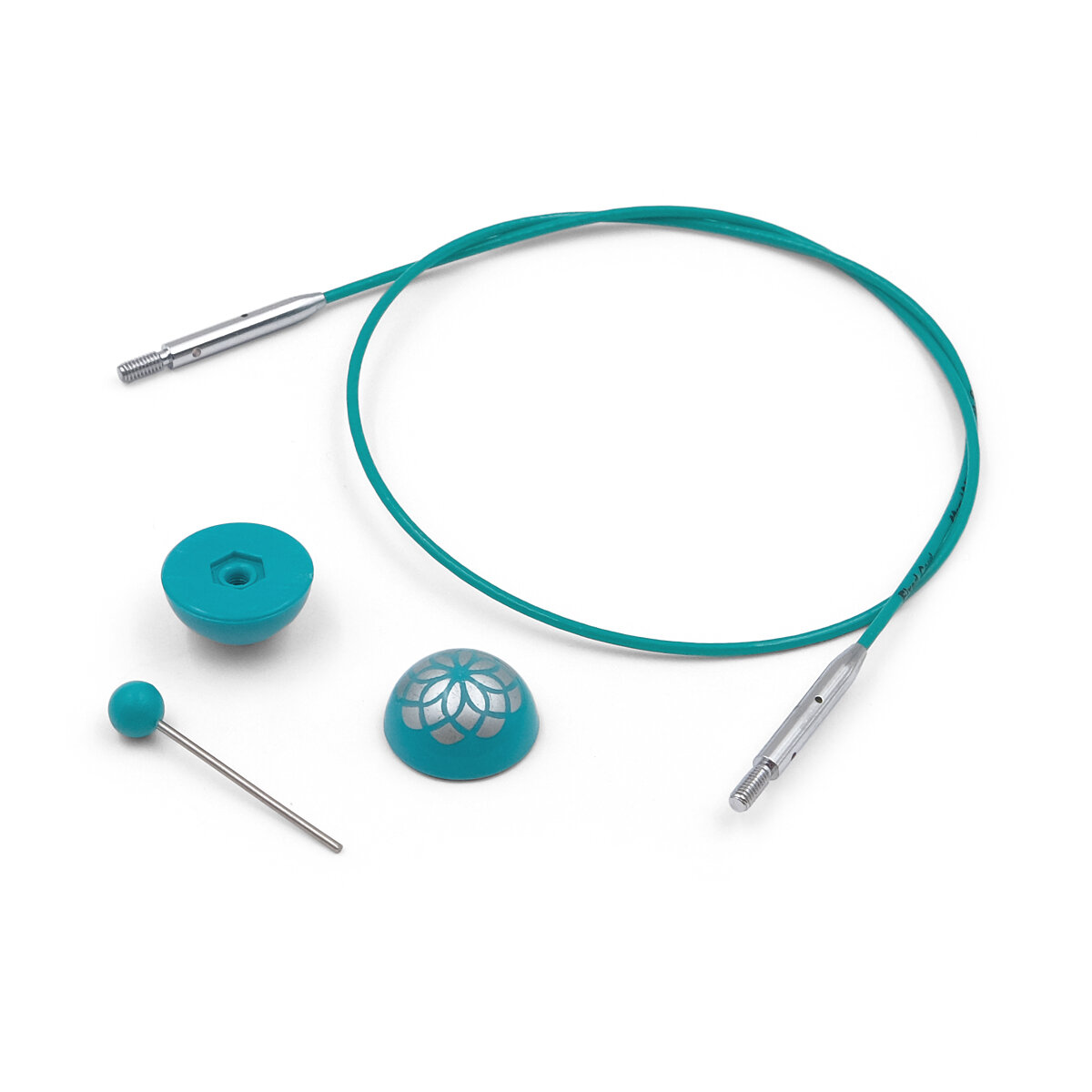 36615 Knit Pro Тросик Mindful (заглушки 2шт, кабельный ключик), длина 76см, нержавеющая сталь с нейлоновым покрытием, бирюзовый