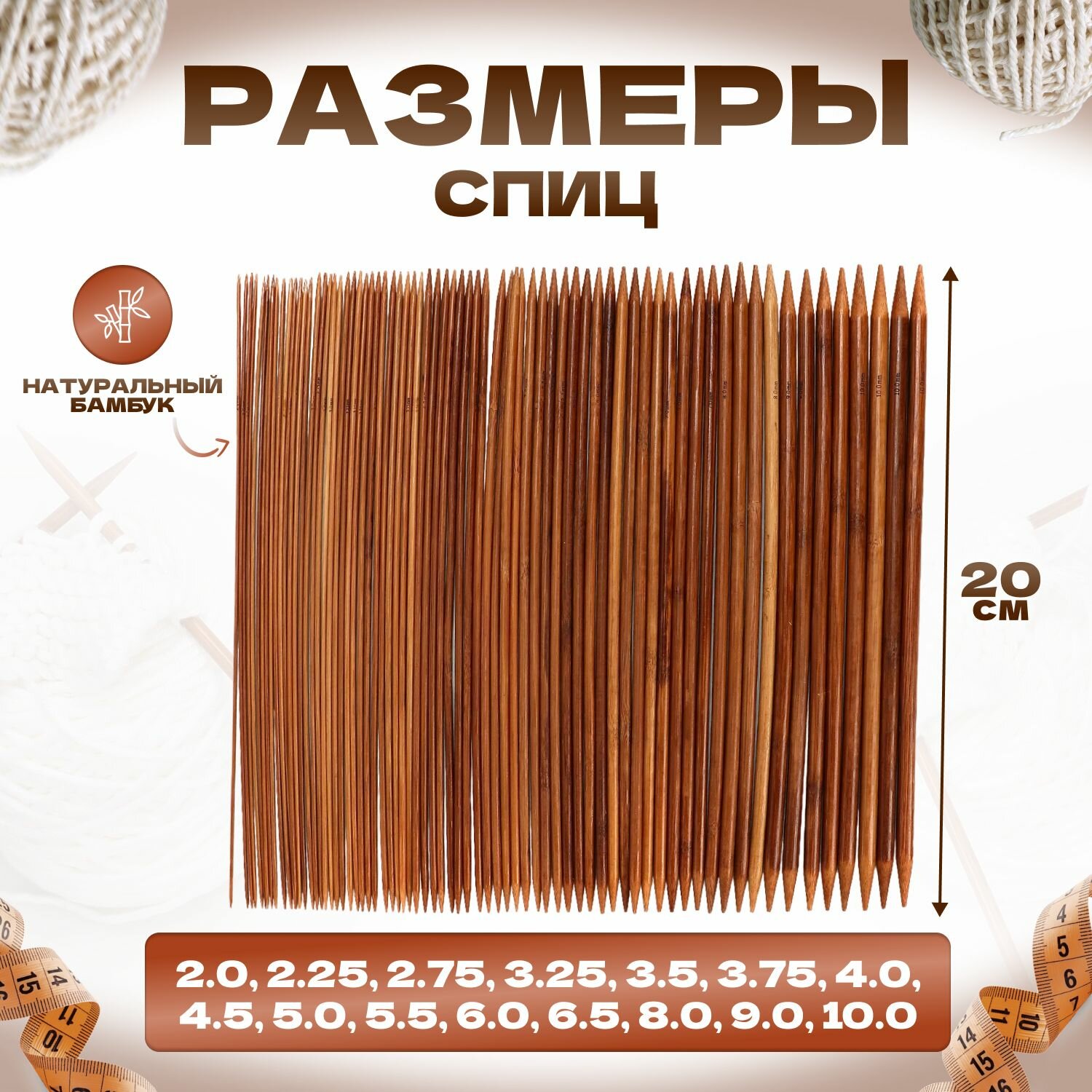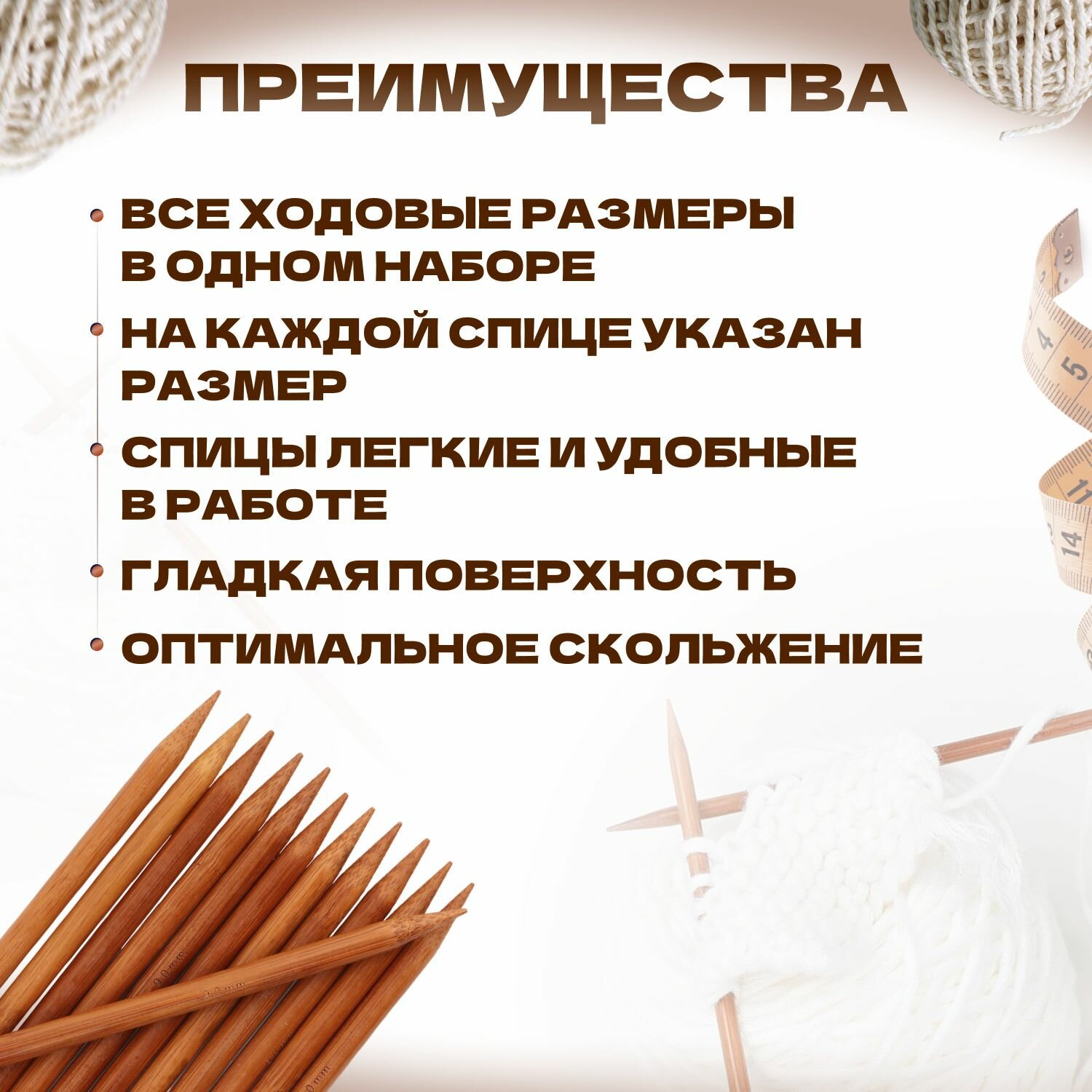 Купить Спицы чулочные для вязания 75штук. Набор деревянных носочных спиц 15 размеров
