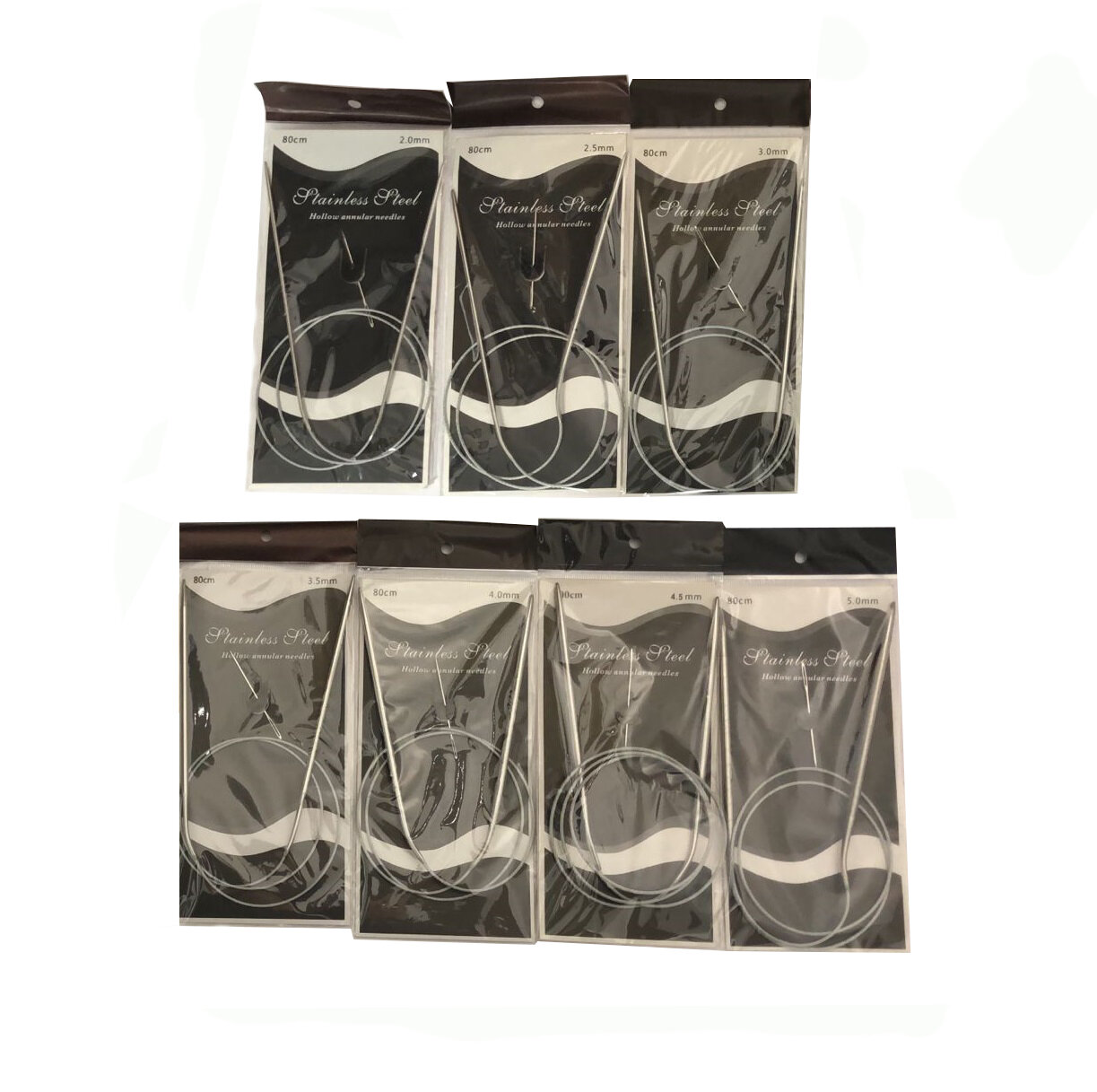 Купить Набор спиц для вязания/ спицы круговые/ диамет 2.0 мм, 2.5 мм, 3 мм, 3.5 мм, 4мм, 4.5 мм, 5 мм/ длина 80 см/ гибкие металлические