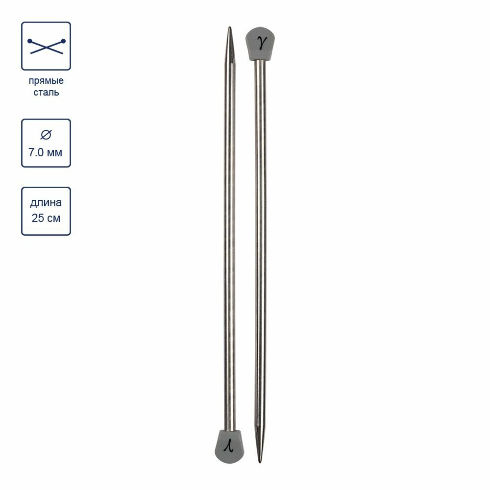 Купить Спицы прямые, сталь GAMMA MKP25 d 7.0 мм, 25 см, 2 шт под никель