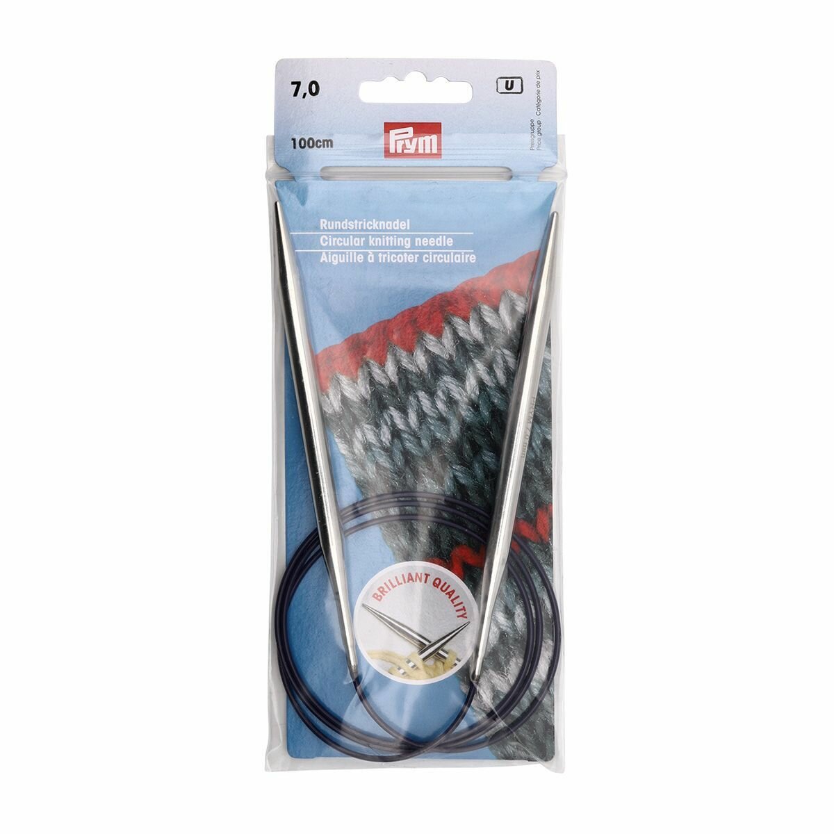 Купить Спицы для вязания круговые 7 мм, 100 см, латунь, серебристые, Prym