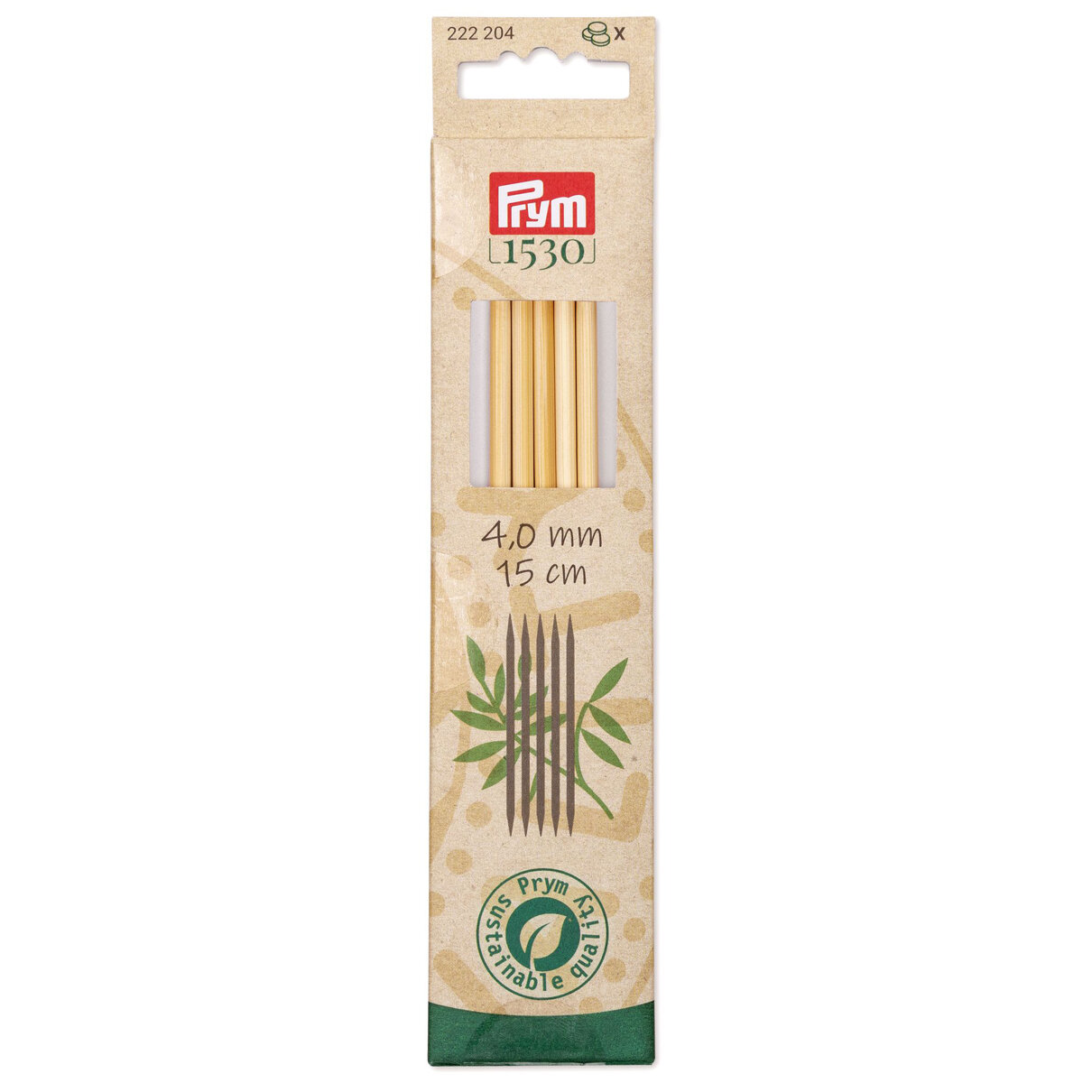 Серия "Prym 1530" - Спицы чулочные 3мм/15см, бамбук, натуральный, 5шт в упаковке, Prym, 222202