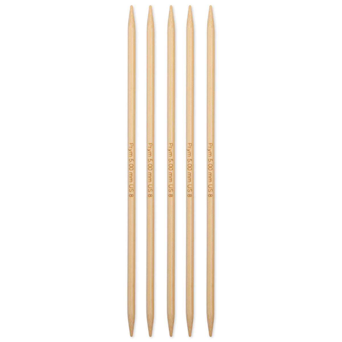 Спицы чулочные для вязания 8 мм*20 см, 5 шт, бамбуковые, Prym