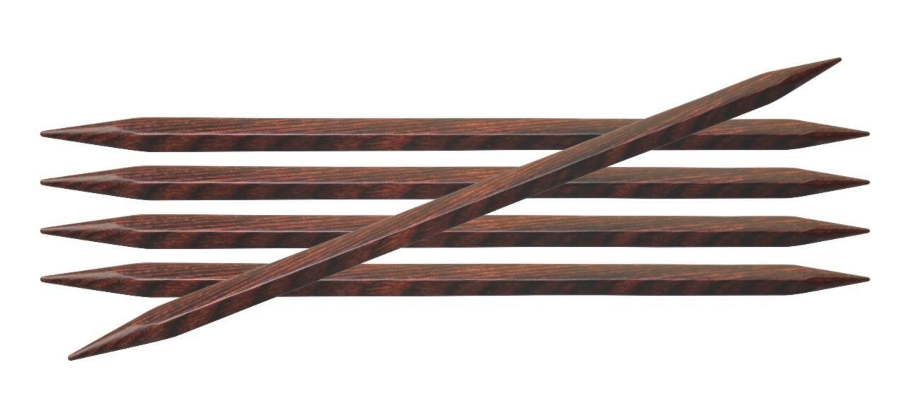 25116 Knit Pro Спицы чулочные для вязания Cubics 6мм /20см дерево, коричневый, 5шт
