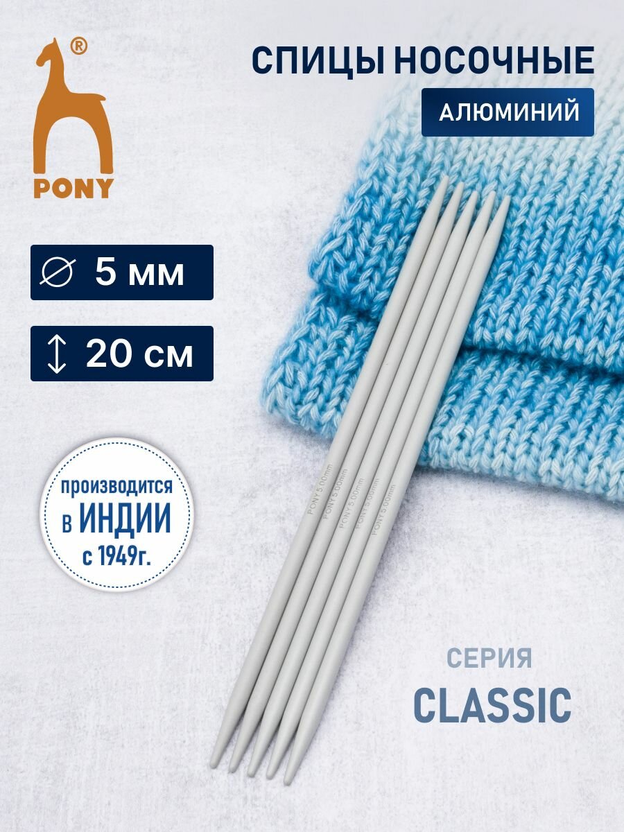 Купить Спицы чулочные для вязания 5 мм*20 см, 5 шт, алюминиевые, PONY