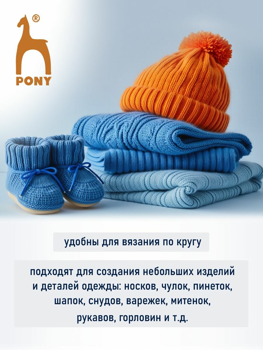 Спицы чулочные для вязания 5 мм*20 см, 5 шт, алюминиевые, PONY интересное:
