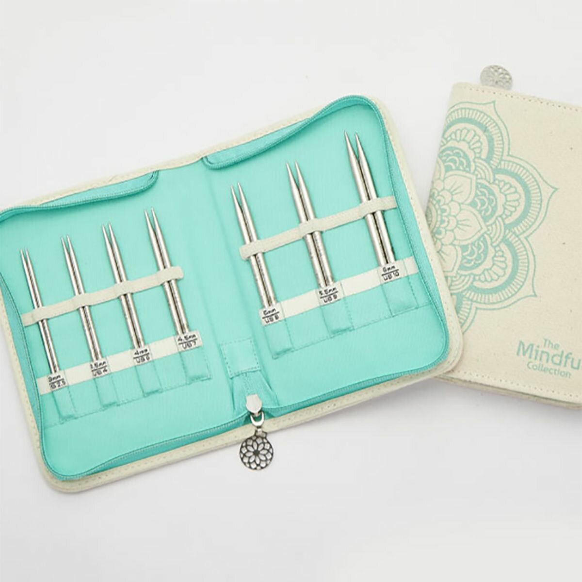 Набор спиц для вязания съемных укороченных KnitPro Mindful 'Kindness', 7 видов спиц 3-6 мм*10 см, нержавеющая сталь, в футляре