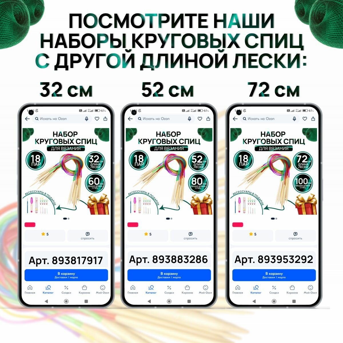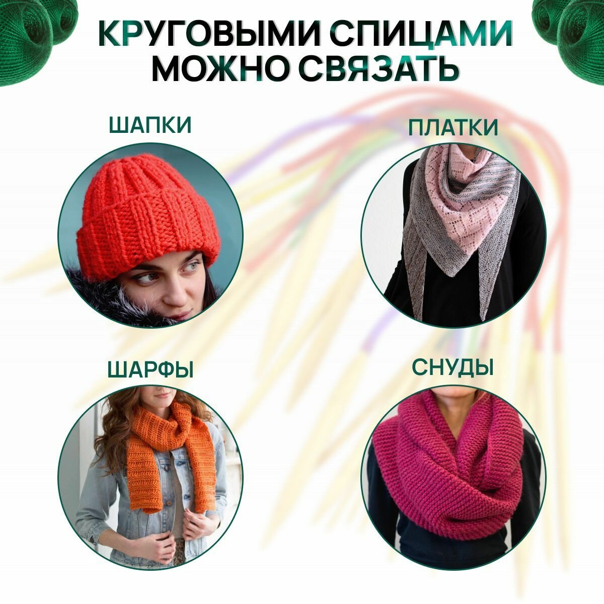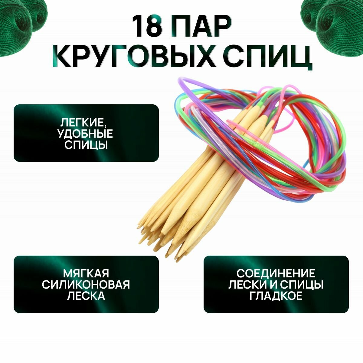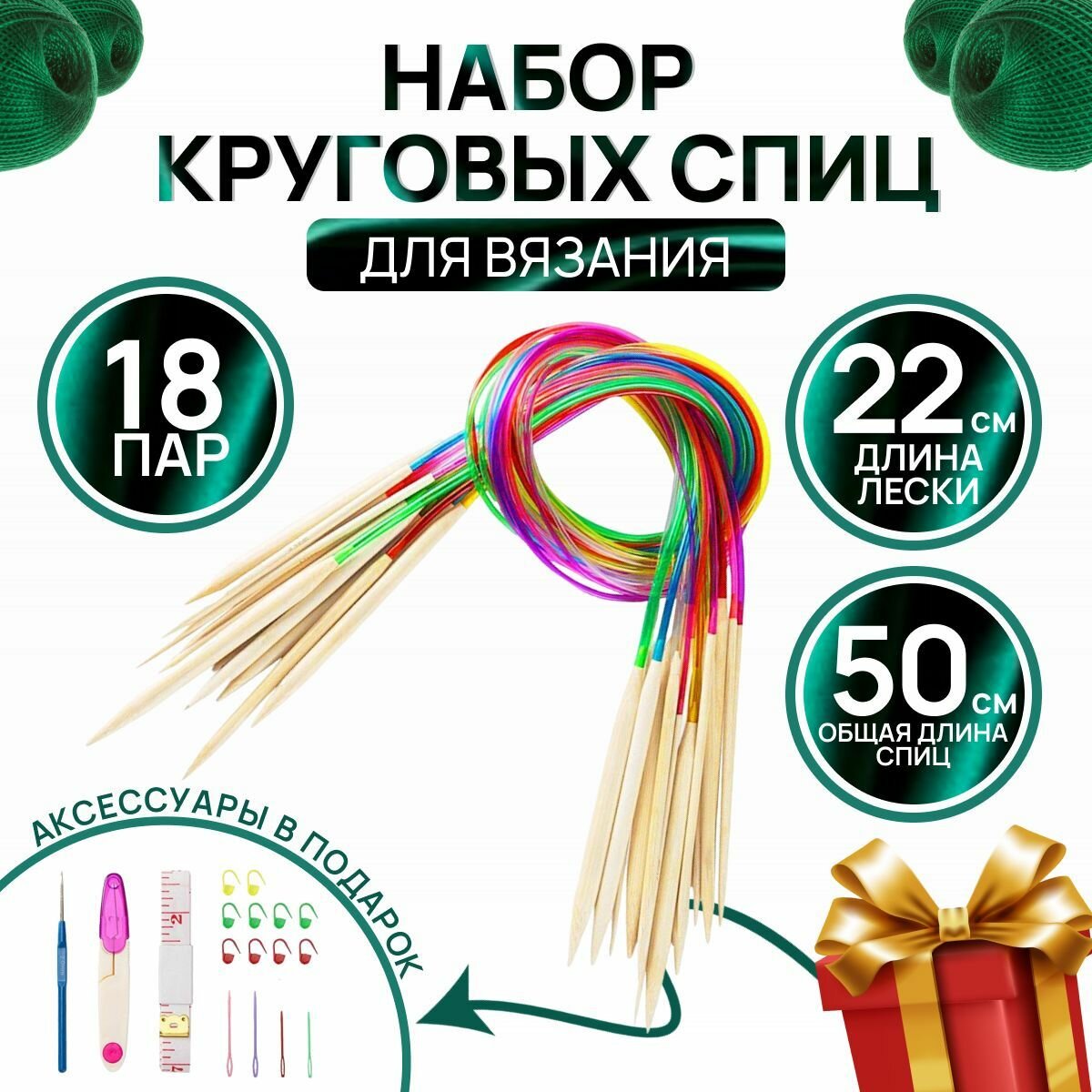 Набор круговых спиц для вязания 18 пар с леской 22см, общей длиной 40 см. с доп. аксессуарами / Спицы деревянные интересное: