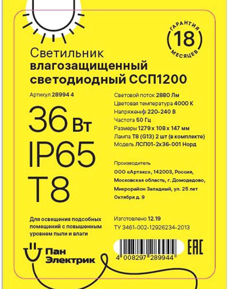 REV Светильник светодиодный влагозащищенный ССП1200 28994 4 .