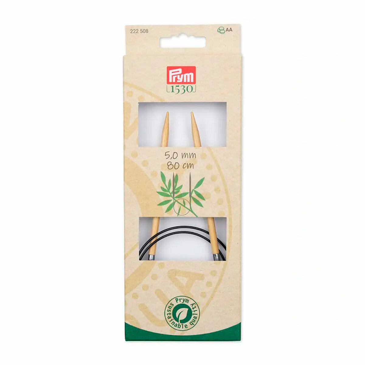 Серия Prym 1530 - Спицы круговые 5мм/80см, бамбук, натуральный, Prym, 222508