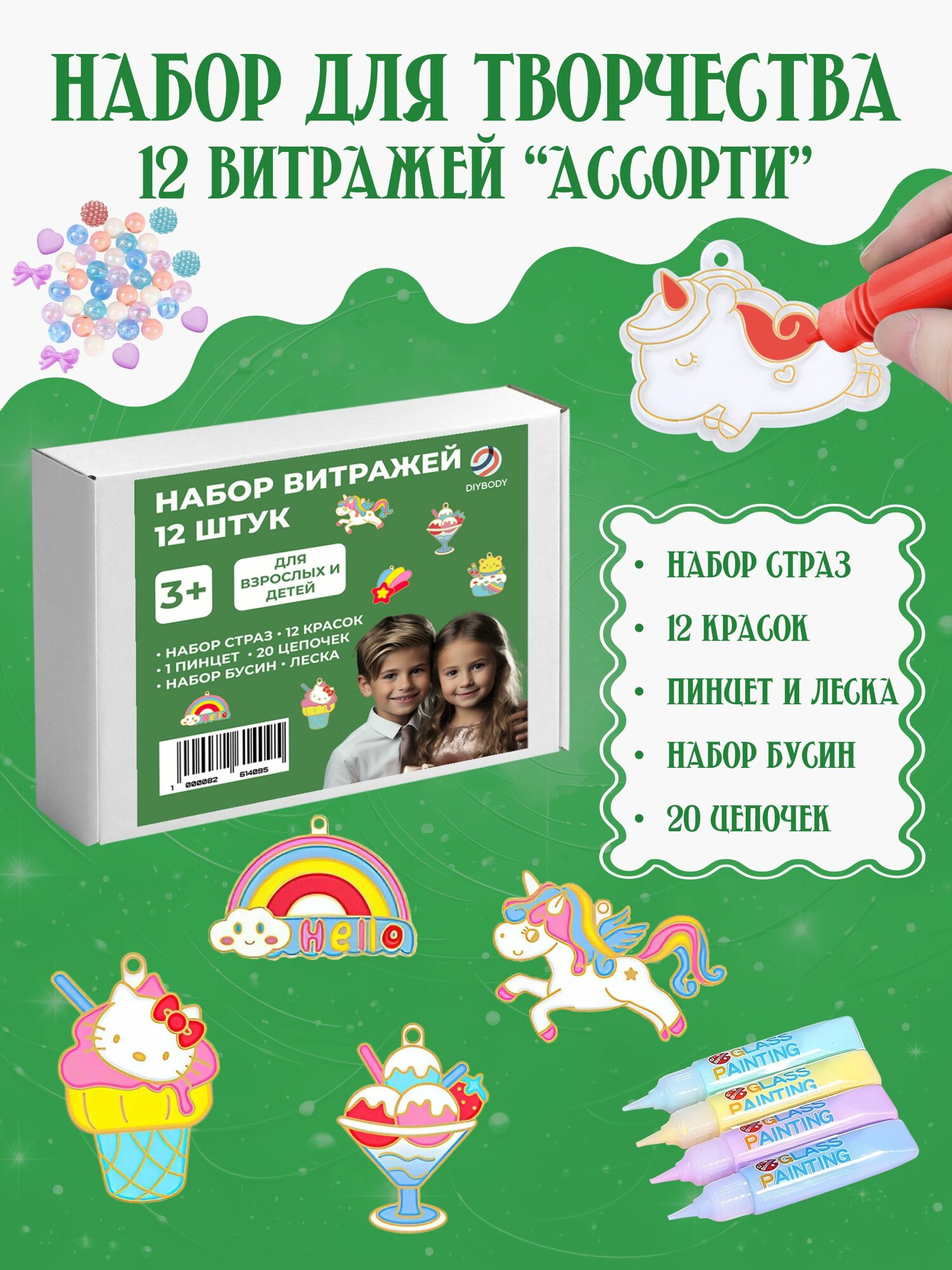Витражи для детей набор 12 шт. "Ассорти" для детского творчества с витражными красками интересное: