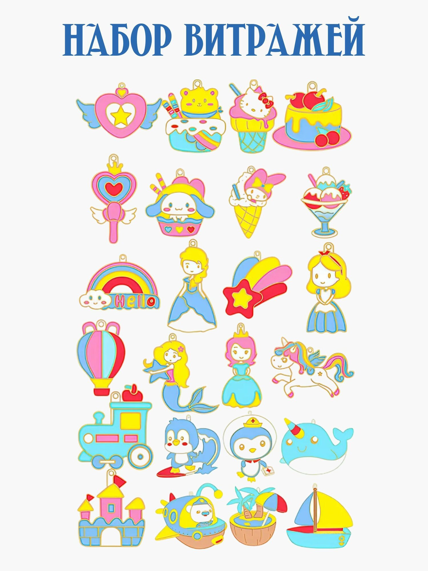 Витражи для детей набор 24 шт. "Ассорти" для детского творчества с витражными красками интересное: