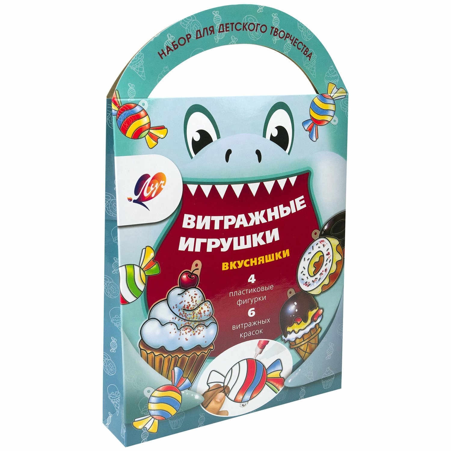 Купить Набор красок по стеклу Луч Вкусняшки 6 цветов + 4 фигурки
