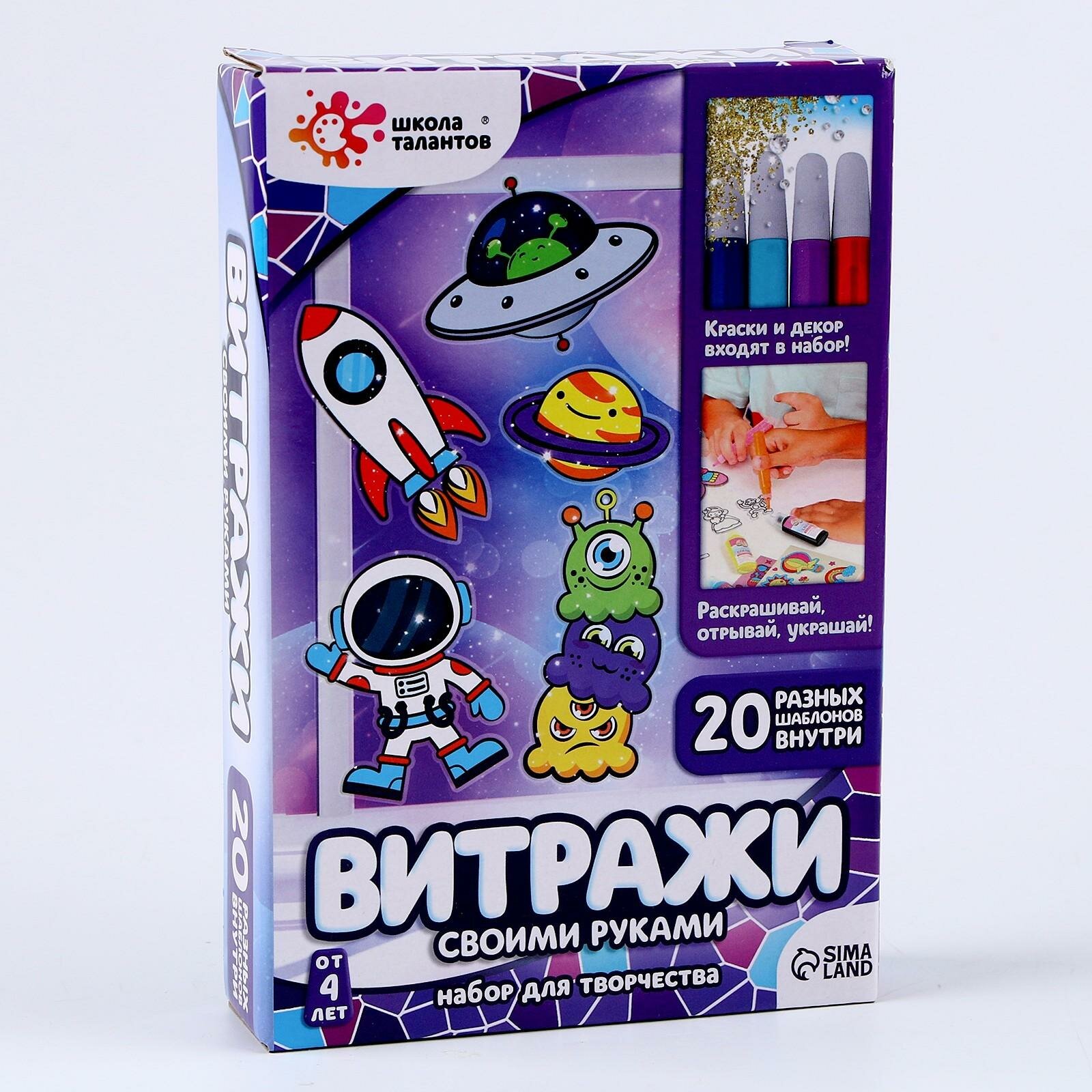 Купить Школа талантов Набор для творчества Раскрась витражики - космос, 20 шт в наборе 4903730