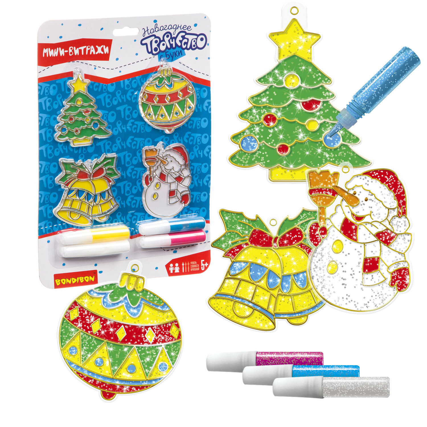 Купить Набор для творчества BONDIBON. Новогодние украшения. Витраж. Творчество с Буки, 4шт. в наборе